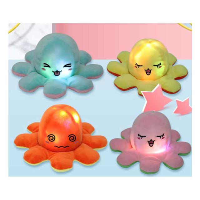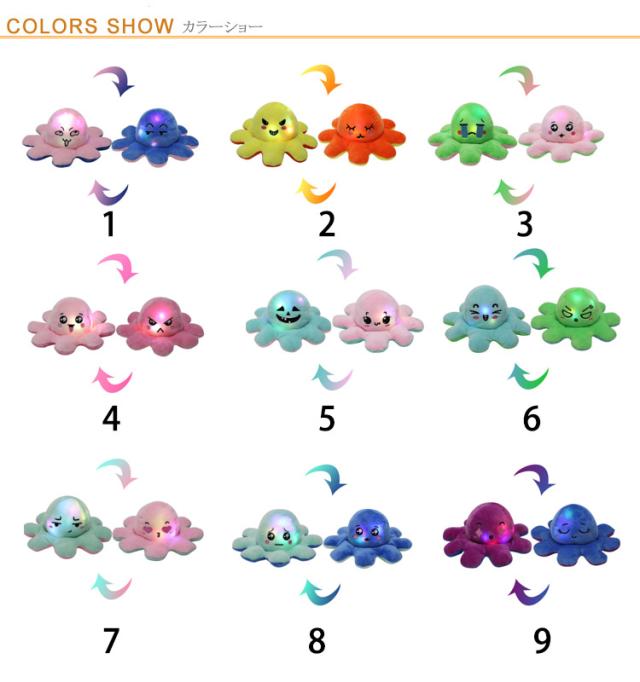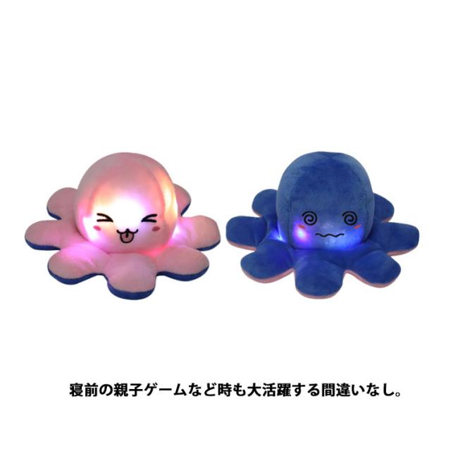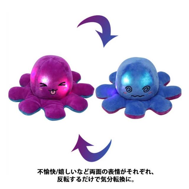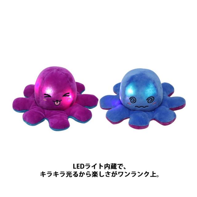 LEDライト付き たこ リバーシブル 20cm タコのぬいぐるみ ぬいぐるみ 両面 ストレス解消 面白い 裏返し 光る キラキラ 人形 おもちゃ 誕生日 表情変化楽しめる 知育玩具 減圧 マスコット ふわふわ 出産祝い 選べる2個セット