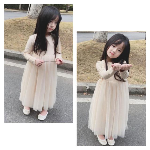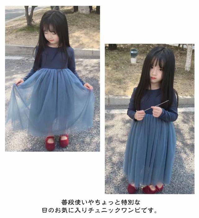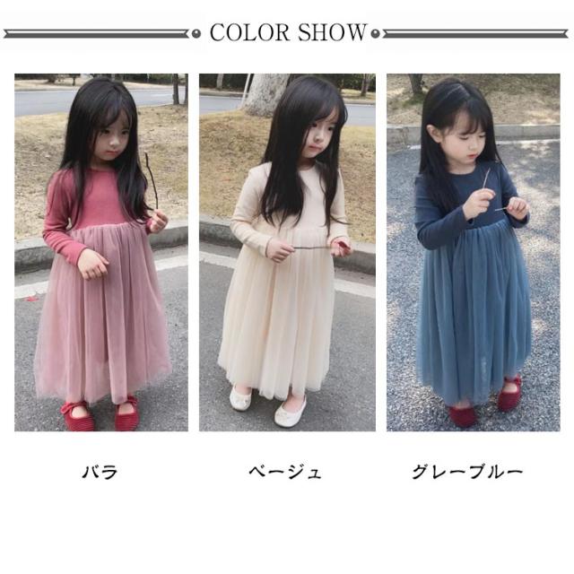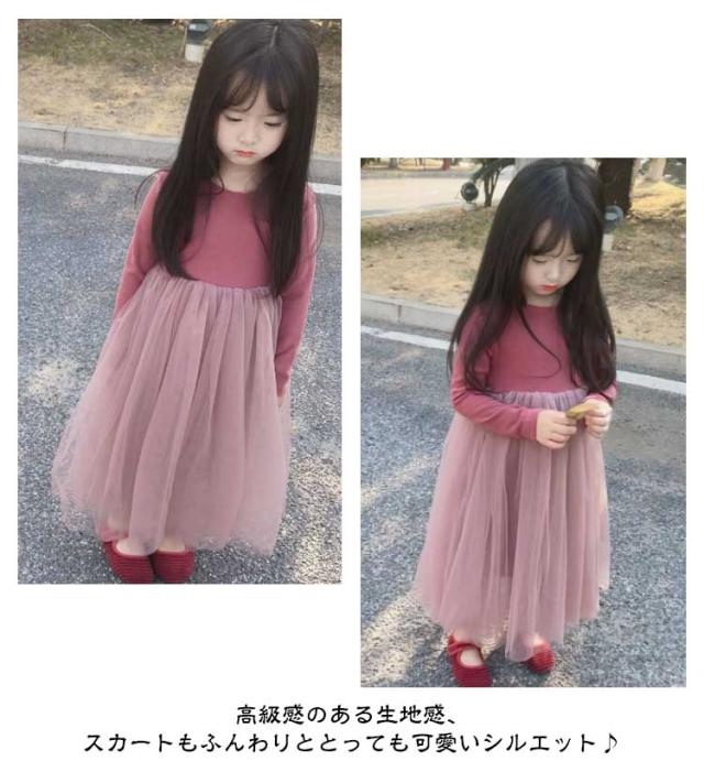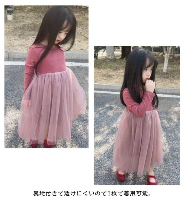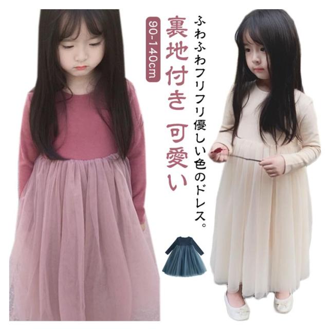 ボリューム 秋 ワンピース キッズ 90 ドレス レース 長袖 ロング 子供 裏地付き 女の子 チュニック フォーマル 子ども服 100 キッズ用 保育園 チュニック チュールスカート 110 120 130 140 cm 可愛い おしゃれ 冬