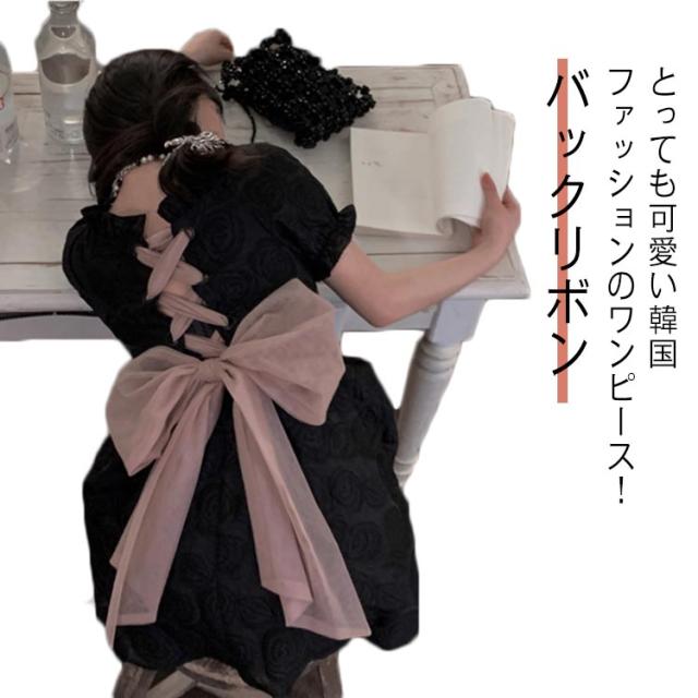 地雷系 ワンピース 服 スカート 参戦服 ミニワンピース ハロウィン コスプレ 黒 ゴシック ロリータ ロリィタ ミニドレス お嬢様 ゆめかわいい やみ可愛い 韓国 春 夏 半袖 ミニ丈 可愛い バックリボン レトロ バルーンスカート パフスリーブ ブラック