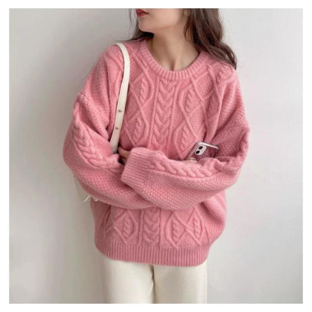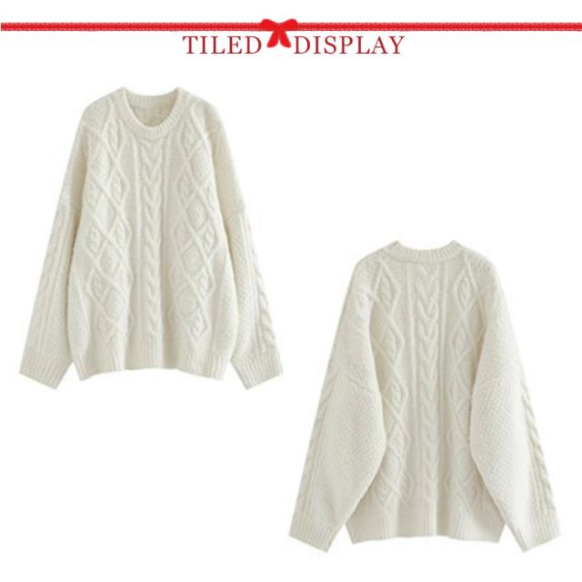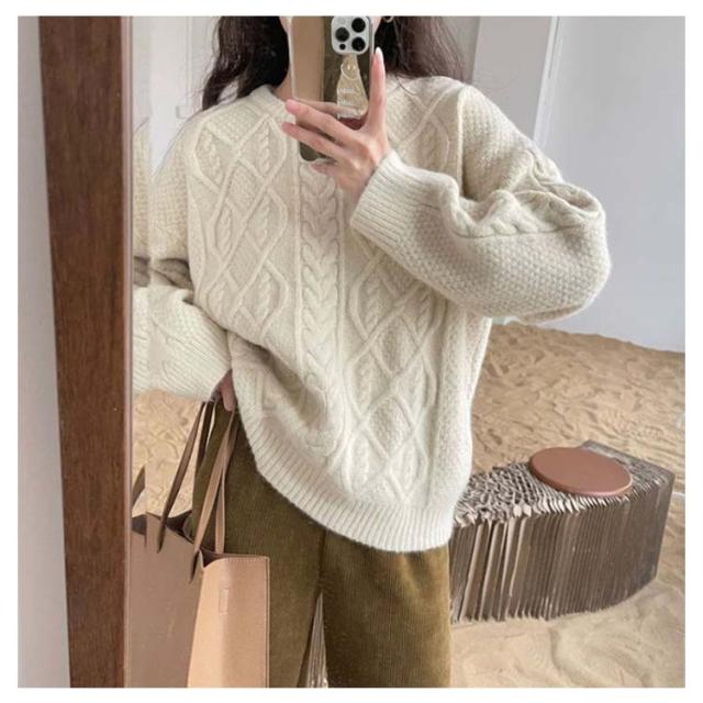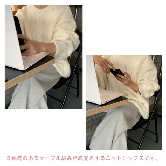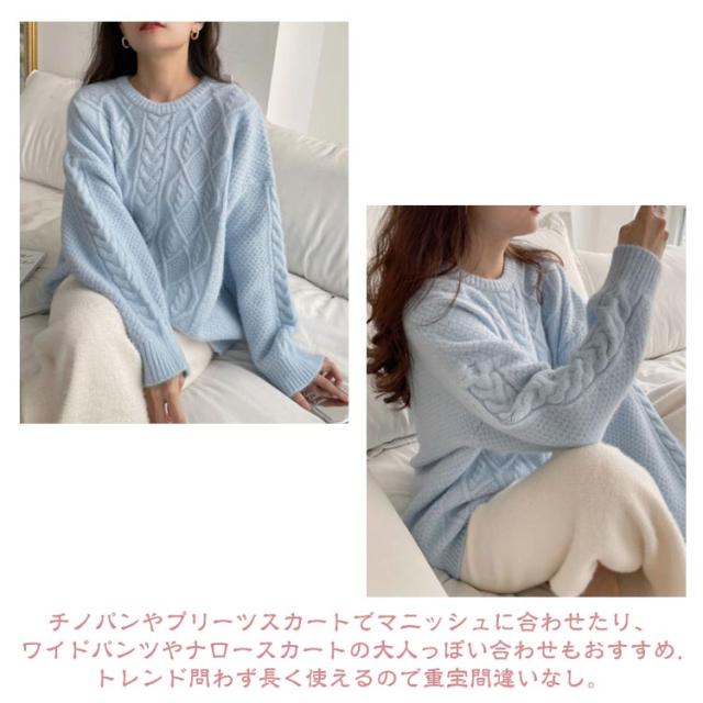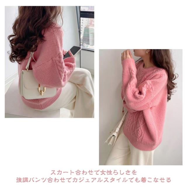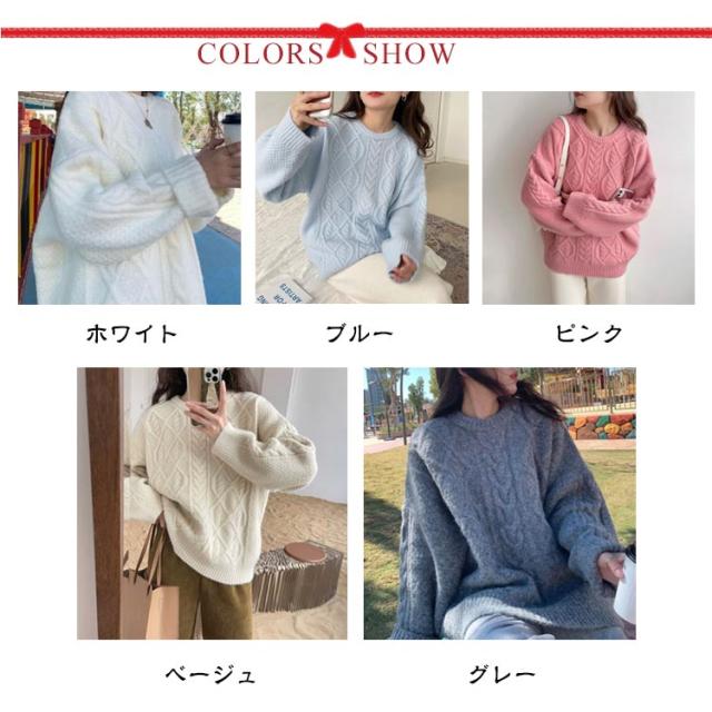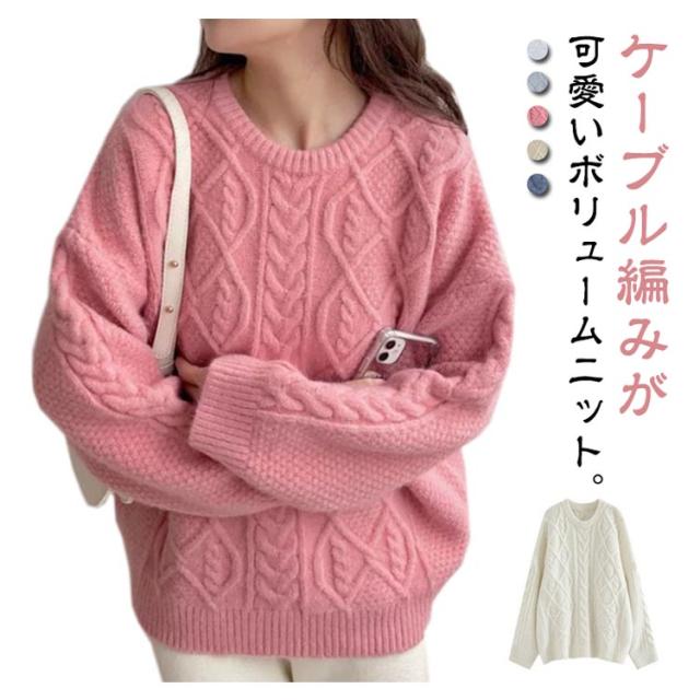 ケーブル柄 クルーネック ニット レディース 秋 冬 ケーブル ニット 長袖 クルーネック トップス ニット セーター 大きめ ゆったり 大人 カラー ケーブル編み 流行 可愛い シンプル 無地