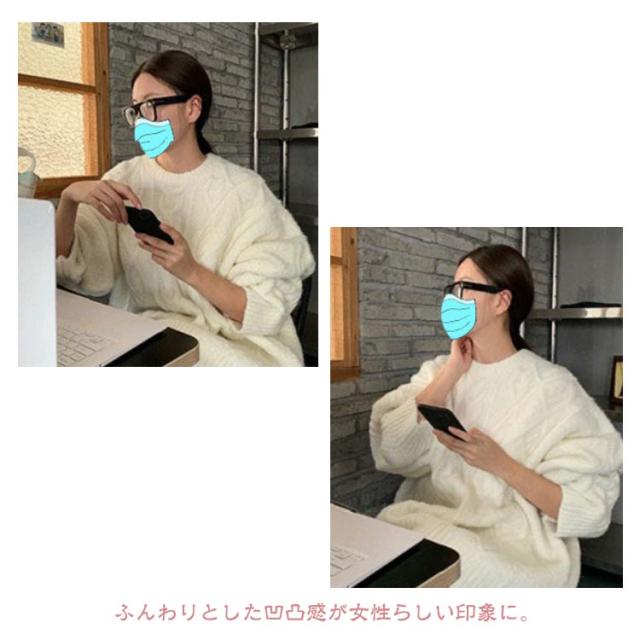 | ケーブル編みが可愛いボリュームニット。ふんわりとした凹凸感が女性らしい印象に。 立体感のあるケーブル編みが高見えするニットトップスです。 柔らかく、もちもちとした肌触りで着心地抜群です。 チノパンやプリーツスカートでマニッシュに合わせたり、ワイドパンツやナロースカートの大人っぽい合わせもおすすめ.トレンド問わず長く使えるので重宝間違いなし。スカート合わせで女性らしさを強調パンツ合わせでカジュアルスタイルでも着こなせる | |