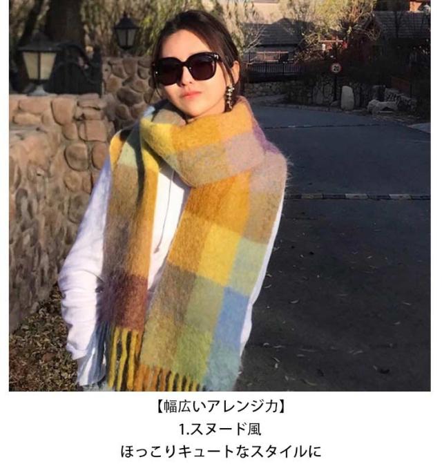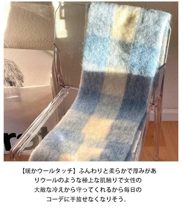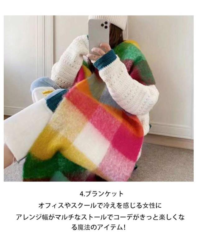 | 毎年秋冬シーズンのワードローブに欠かせないマストアイテム! カラーバリエーションが豊富なので年齢問わず使えたり、 カラー違いで揃えてコーデを楽しんでみたり、プレゼントにも喜ばれそうなストールです。 【チェック柄】ダークになりがちなスタイルをパッと明るく仕上げてくれるワンポイントにぴったりなチェック。 【暖かウールタッチ】ふんわりと柔らかで厚みがありウールのような極上な肌触りで女性の大敵な冷えから守ってくれるから毎日のコーデに手放せなくなりそう。 【大判サイズ】大判サイズのストールだから首元にくるくる巻くとボリュームができ小顔効果アップ。 【幅広いアレンジ力】 1.スヌード風 ほっこりキュートなスタイルに 2.アフガン巻き サイドのフリンジを活かしたハイセンスなポイント使いに 3.ショール風 肩にかけて垂らしたストールをベルトを捲き込んだ大人の女性らしいスタイルに 4.ブランケット オフィスやスクールで冷えを感じる女性に アレンジ幅がマルチなストールでコーデがきっと楽しくなる魔法のアイテム! | |