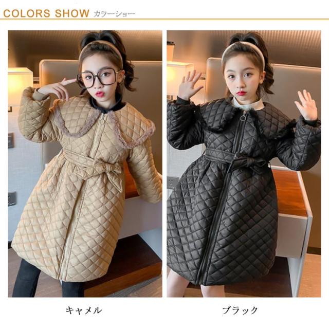 子供服 キッズ 中綿コート 女の子 ロングコート 裏起毛 保温 暖かい 冬 冬用 ジャケット ベルト付き 中綿 ジャケットブルゾン 長袖 ロング丈 コート フード付き キッズ 裏起毛 アウター 防寒 カジュアル 秋冬用 110cm 120cm 130cm 140cm 150cm 160cm 170cm 送料無料