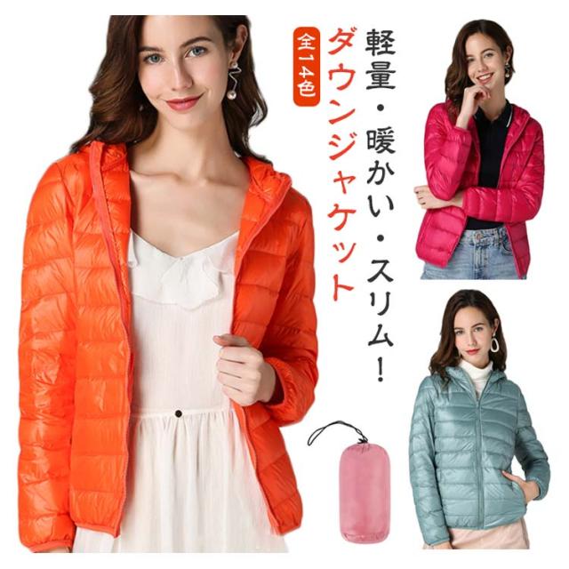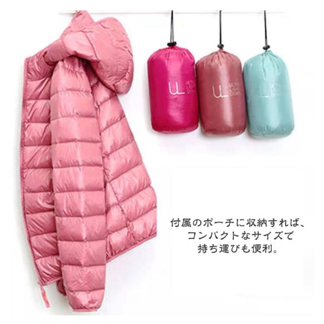 撥水 暖かい 軽量 コート レディース 大きいサイズ 防風 ウルトラライト ダウン 春秋冬 薄手 ライトダウンジャケット 収納袋付き ダウンジャケット 防寒 フード付き 無地 シンプル アウター ポーチ付 キルティング 防寒