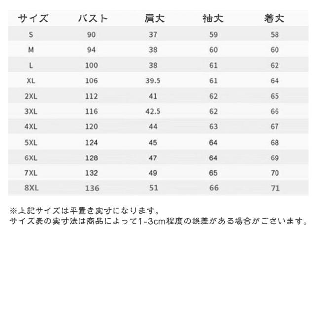 | サイズ | S M L XL 2XL 3XL 4XL 5XL 6XL 7XL 8XL |