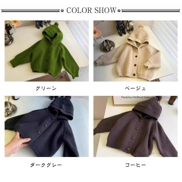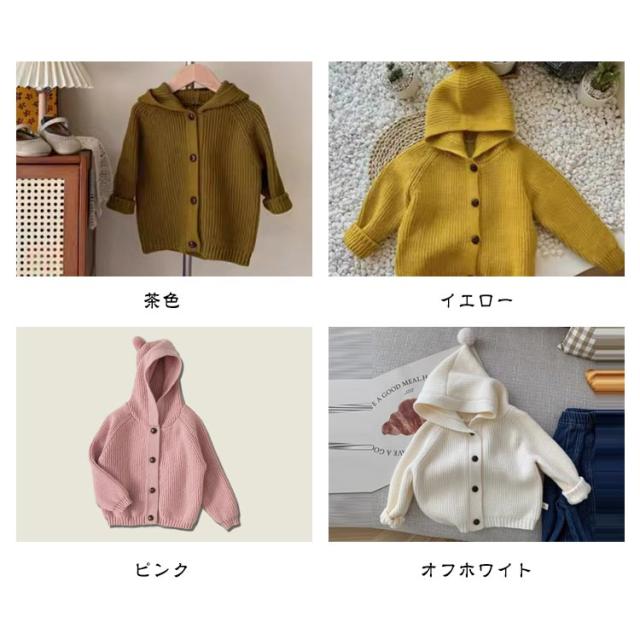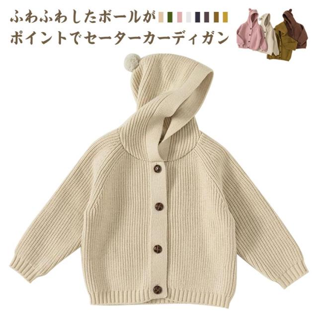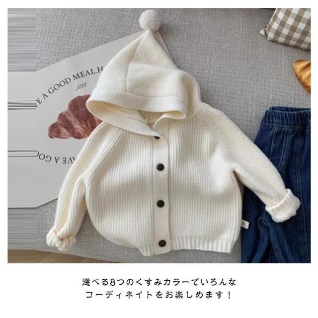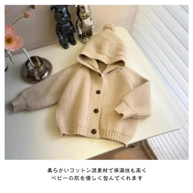 カーディガン キッズ ベビー 綿 コットン レース ニット セーター フード付き 女の子 男の子 赤ちゃん 子供 幼児ベビー ベビー服 子供服 前開き 羽織り アウター お出かけ 長袖 厚手 すみカラー 無地 やわらかい カジュアル おしゃれ 可愛い ふわふわ 秋 冬 暖かい 送料無料
