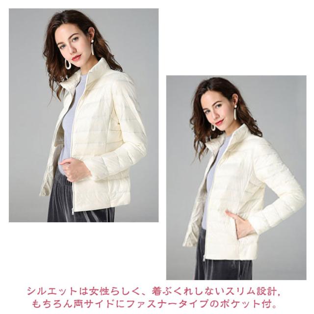 | 全12色 ダウンジャケット 軽量・暖かい・スリム!女性の希望をすべて叶えるダウンジャケットのご紹介です。 掛け布団の詰め物などにも使われるホワイトダックダウンを使用し、暖かいのに驚くほどの軽さ! シルエットは女性らしく、着ぶくれしないスリム設計,もちろん両サイドにファスナータイプのポケット付。 付属のポーチに収納すれば、コンパクトなサイズで持ち運びも便利。 | |