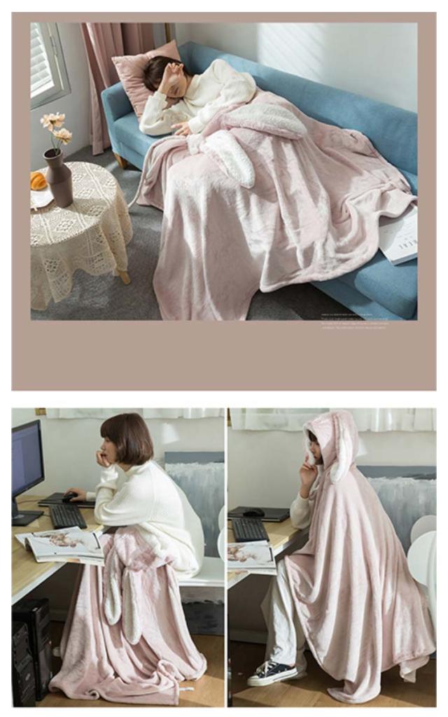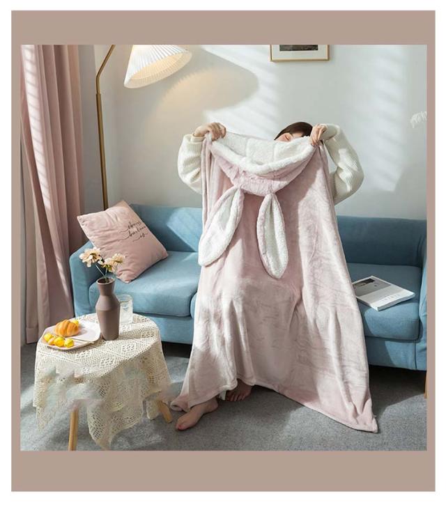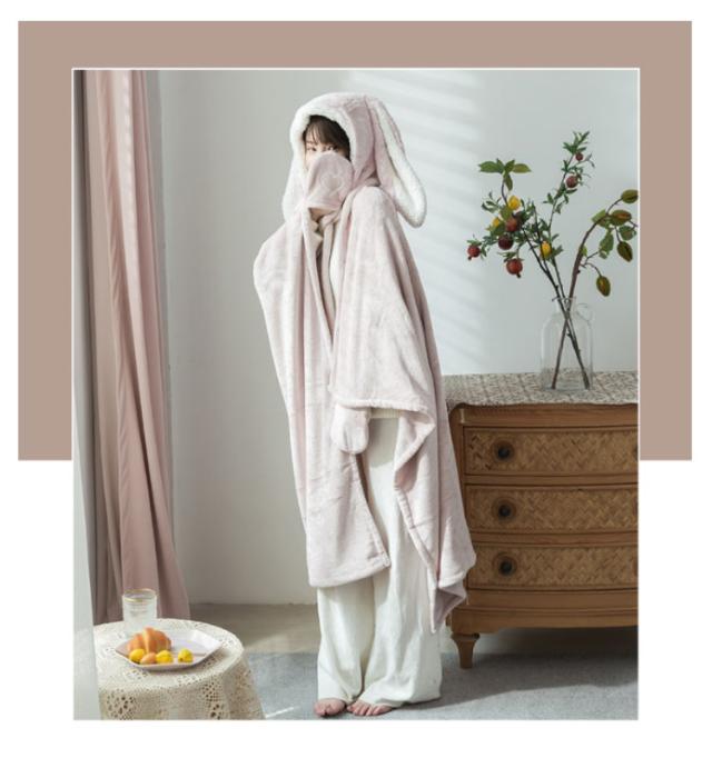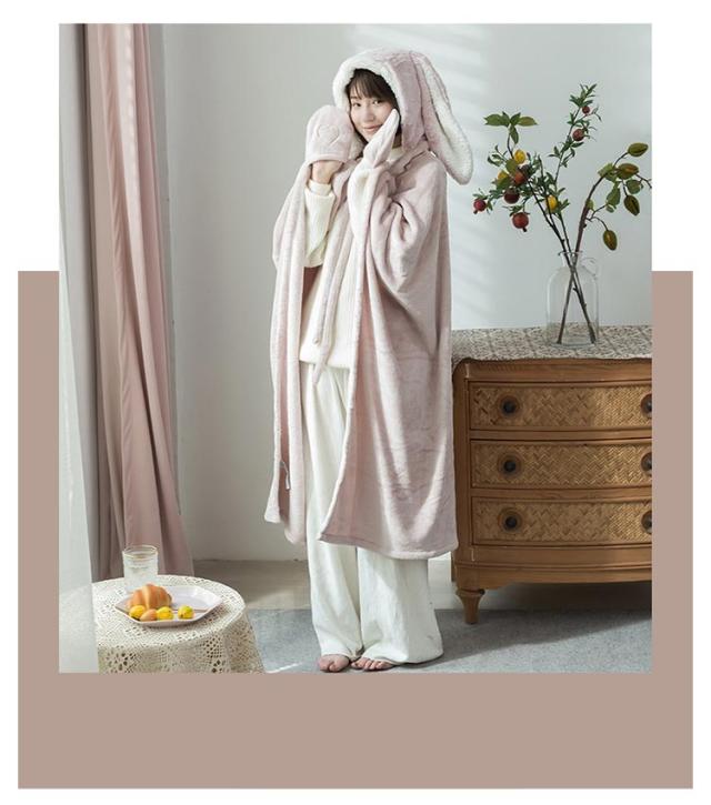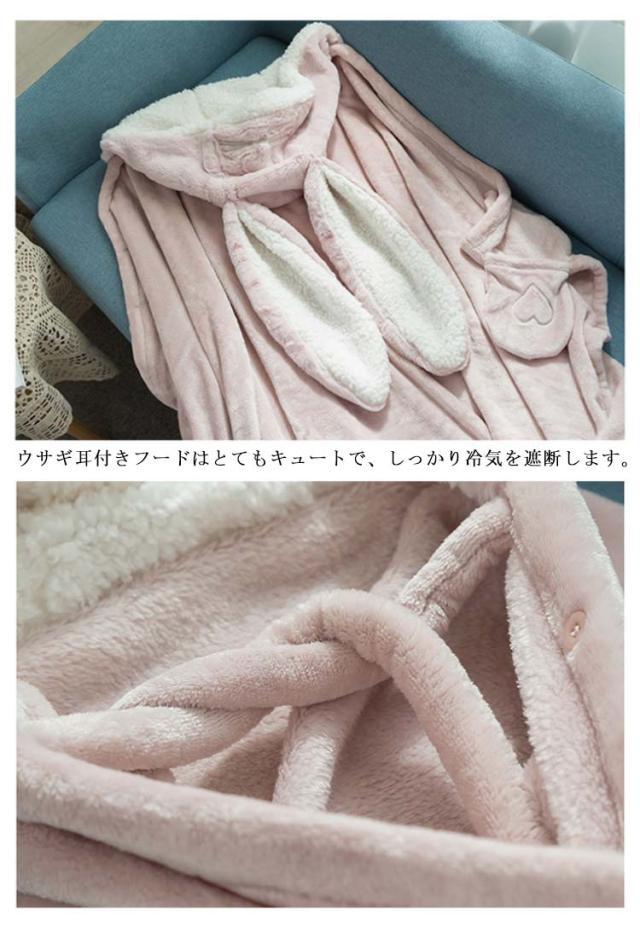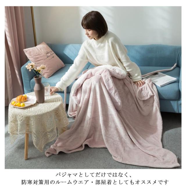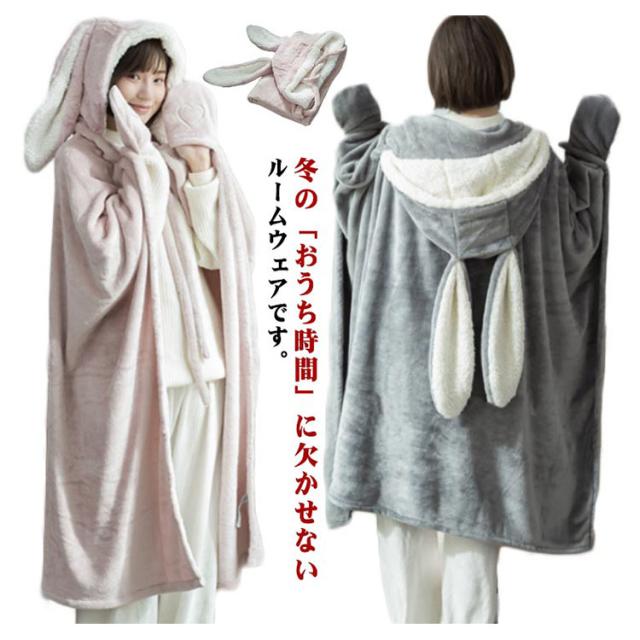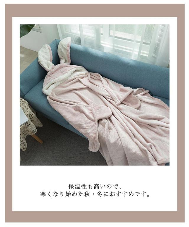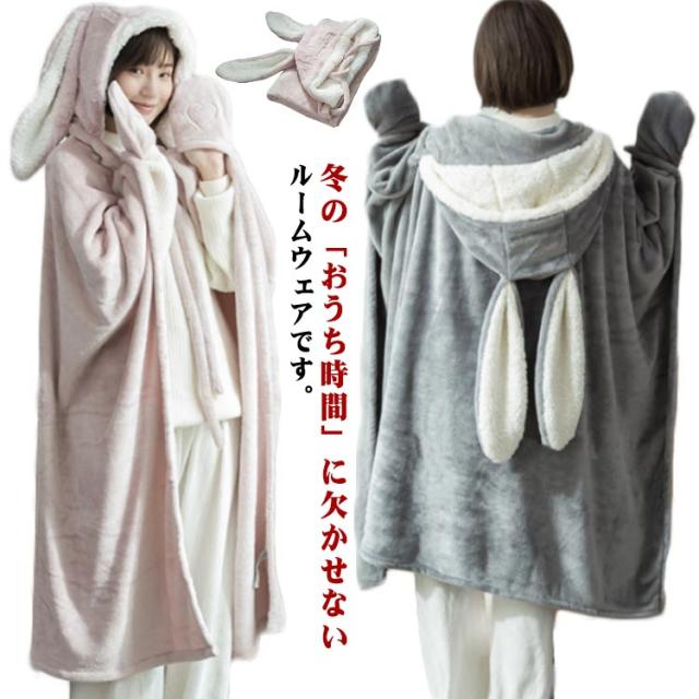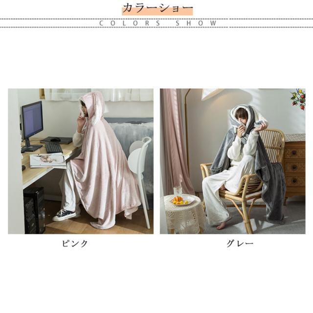 着る毛布 レディース ブランケット 可愛い フード付き 部屋着 耳付き 前開き フランネル生地 暖かい ふわふわ もこもこ 厚手 丸洗い ルームウェア あったか 秋冬 お洒落 柔らかい プレゼント 送料無料