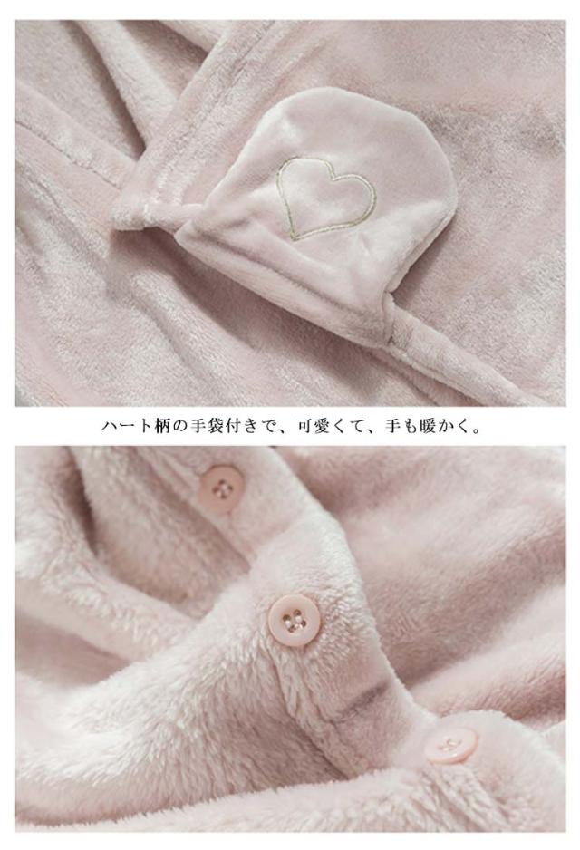 | 冬の「おうち時間」に欠かせないルームウェアです。 ふわふわ柔らかな起毛素材を使用して、暖かさをよくよくキープします。 ウサギ耳付きフードはとてもキュートで、しっかり冷気を遮断します。 ハート柄の手袋付きで、可愛くて、手も暖かく。 保温性も高いので、寒くなり始めた秋・冬におすすめです。 パジャマとしてだけではなく、防寒対策用のルームウエア・部屋着としてもオススメです | |