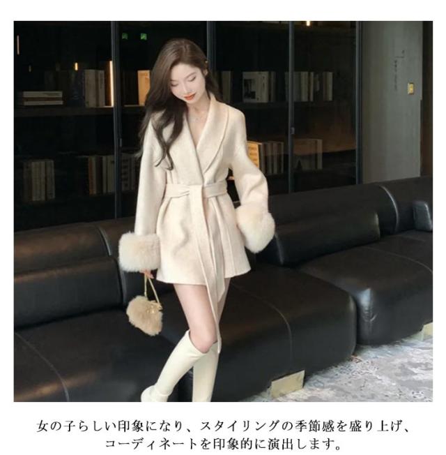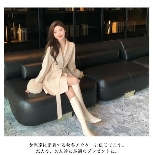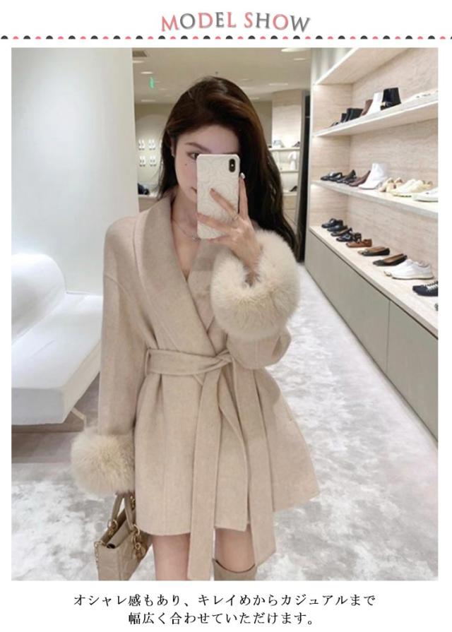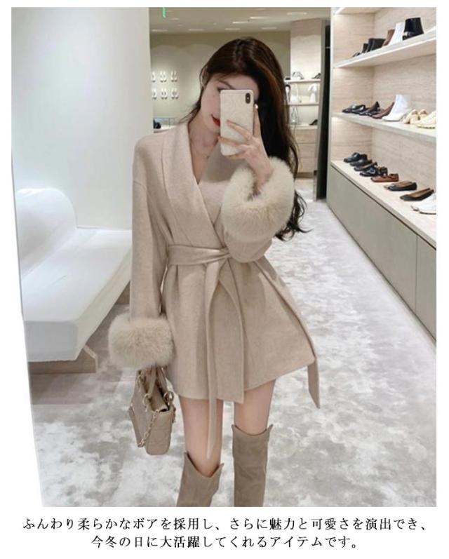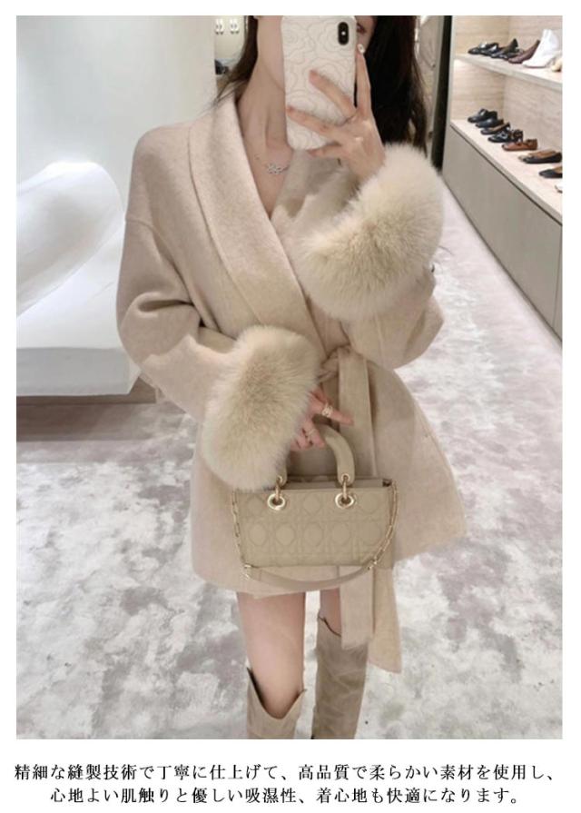 送料無料 ポンチョコート ファーコート エレガント アウター レディース 長袖 ミドル丈 毛皮コート ファー襟 ファー袖 ベルト付き ゆったり 秋冬用 防寒ウェア 暖かい 保温 防寒対策 オシャレ もこもこ