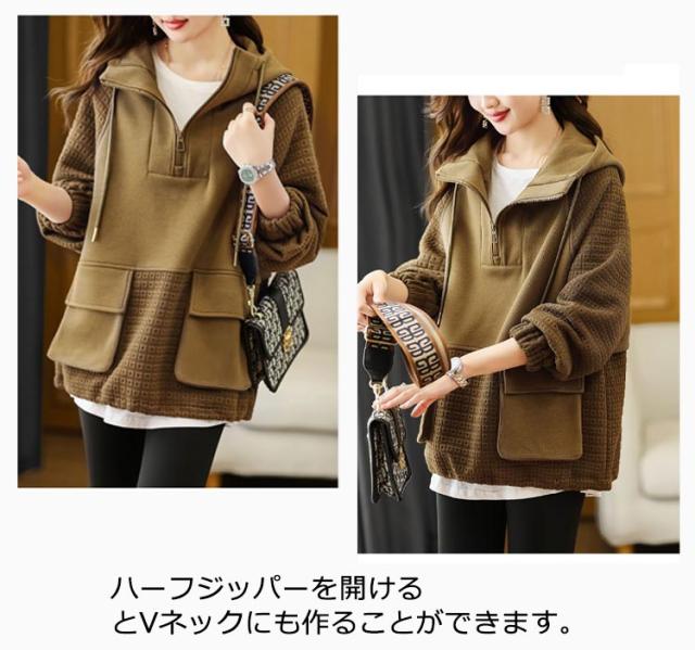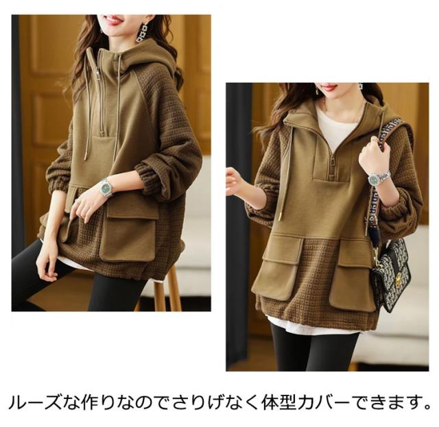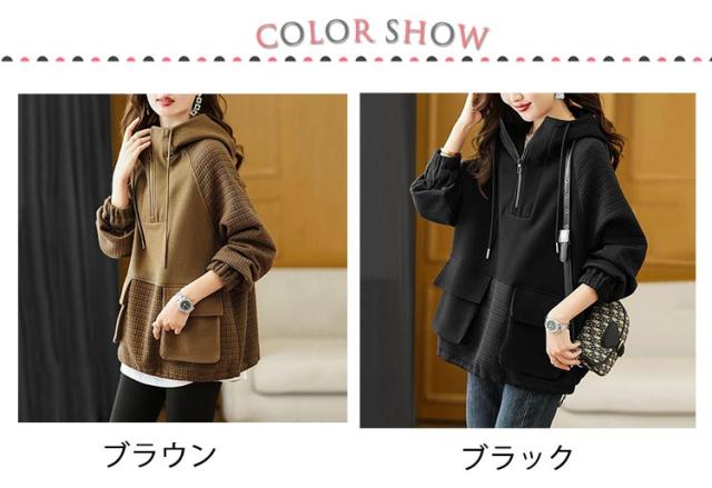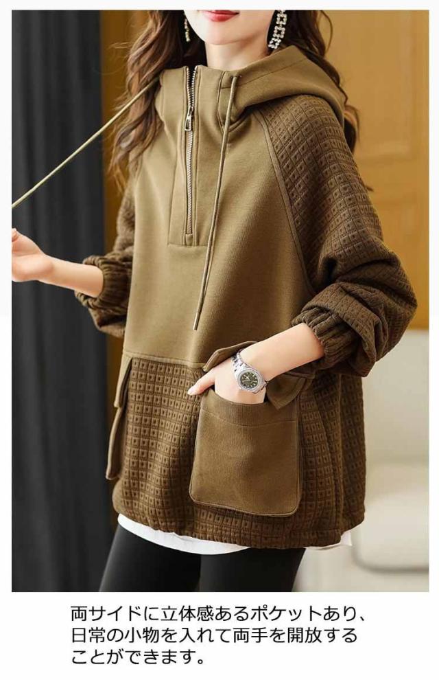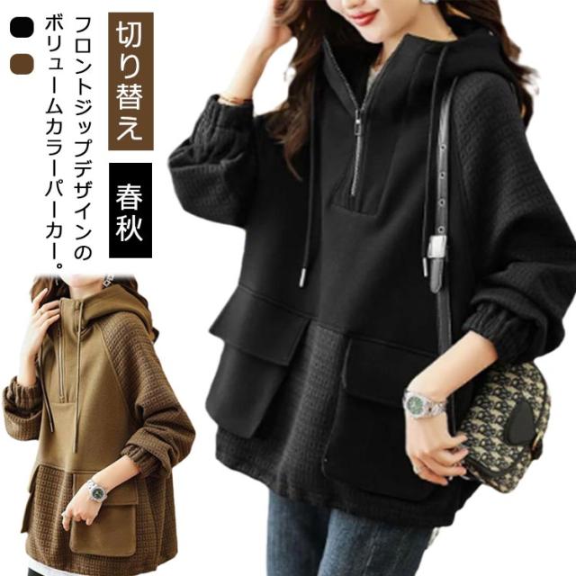 ビッグパーカー パーカー レディース ボリュームカラー プルオーバーパーカー 大きサイズ 切り替え ハイネックパーカー 春秋 おしゃれ