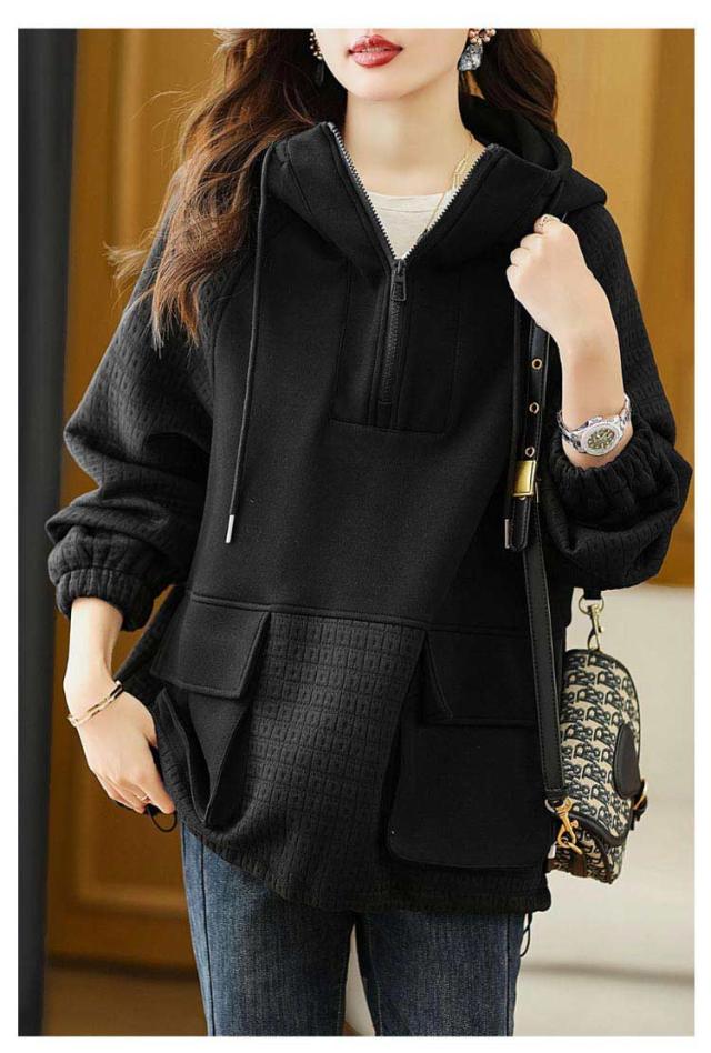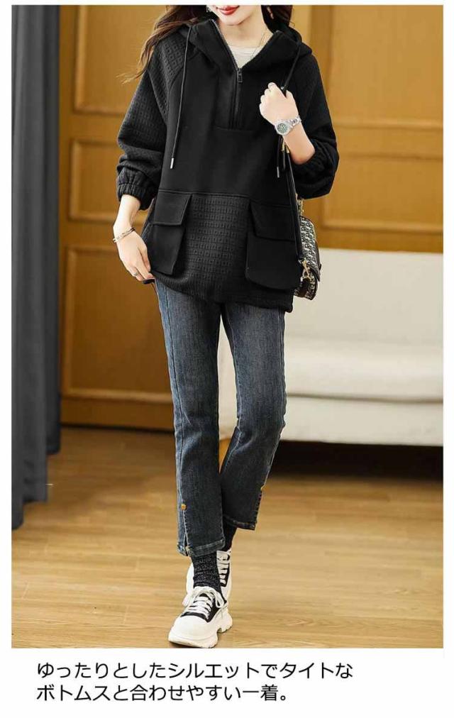 | フロントジップデザインのボリュームカラーパーカー。 ハーフジッパーを開けるとVネックにも作ることができます。 両サイドに立体感あるポケットあり、日常の小物を入れて両手を開放することができます。 ルーズな作りなのでさりげなく体型カバーできます。 薄すぎず、厚すぎず、程度良い厚さでロングシーズン使えます。 ゆったりとしたシルエットでタイトなボトムスと合わせやすい一着。 | |