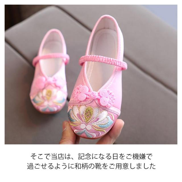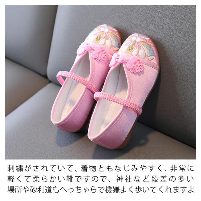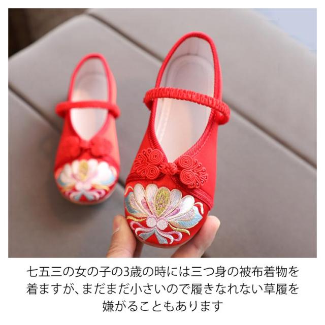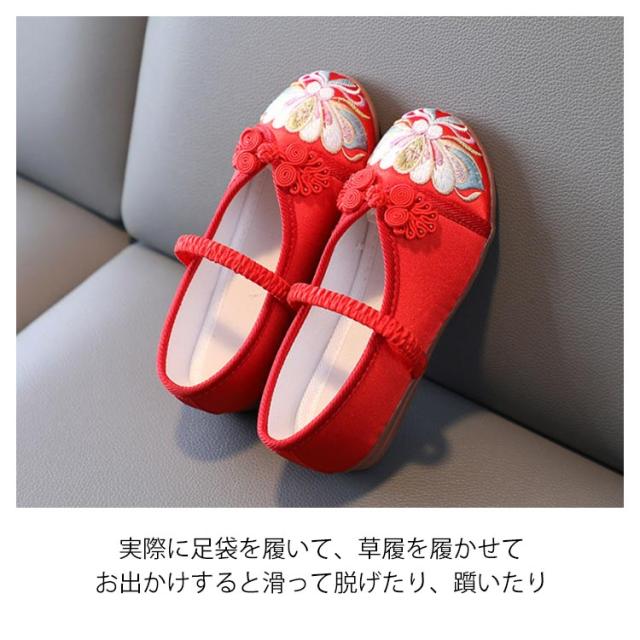 草履 靴 花柄 刺繍 七五三 靴 草履 キッズ 歩きやすい 痛くない 赤 ピンク 子供靴 歩きやすい ぺたんこ フラットシューズ 和柄の靴 和装