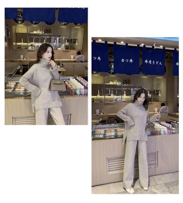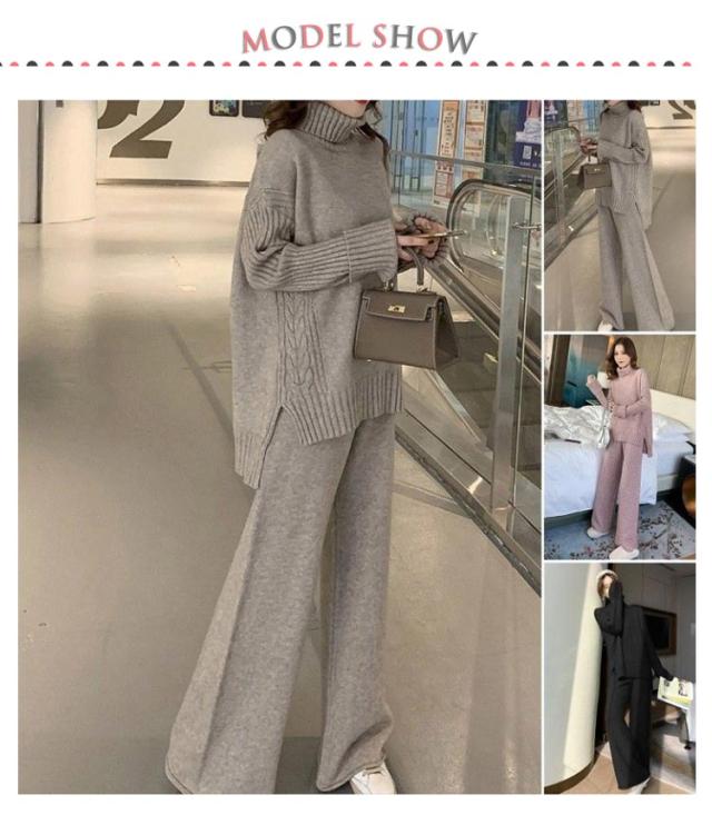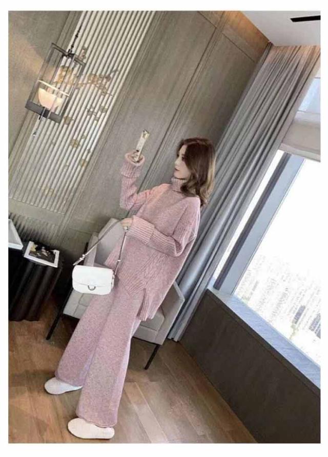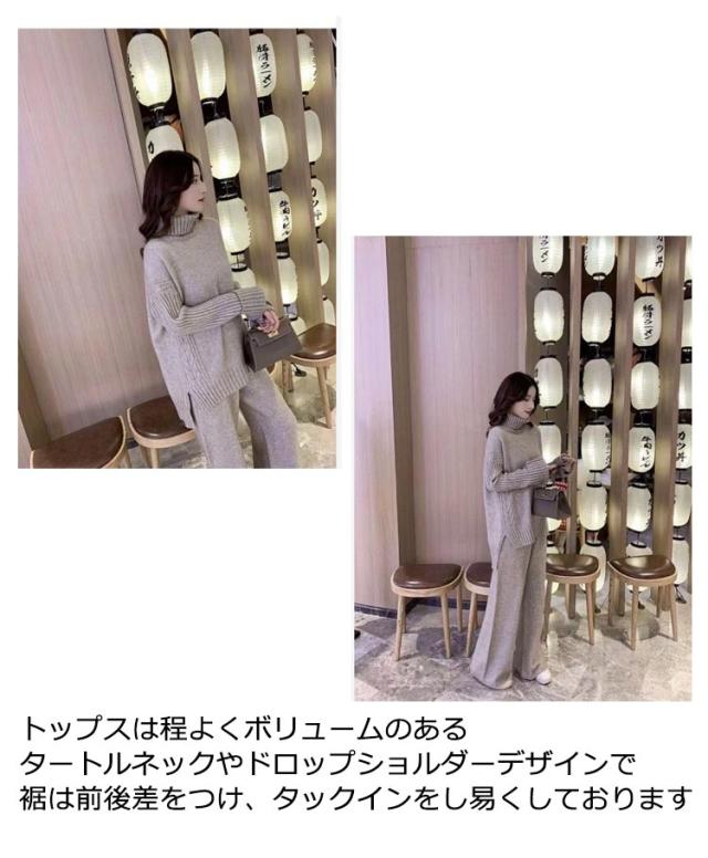 ニットセットアップ セットアップ レディース 秋冬 ニット パンツ セーター ニットアップ タートルネック ニットセーター ニットガウチョパンツ スリット 厚手 ワンマイルウェア 2点セット 上下セット きれいめ カジュアル