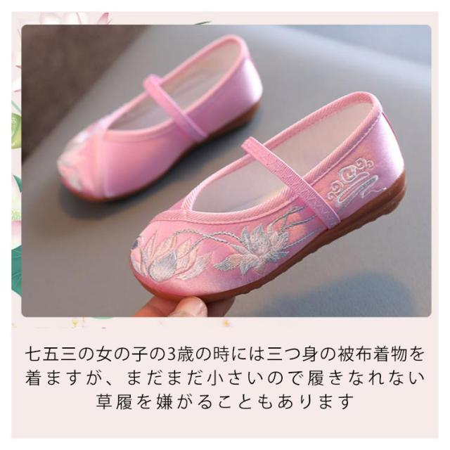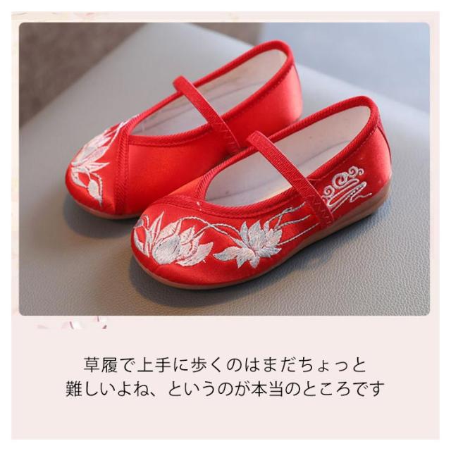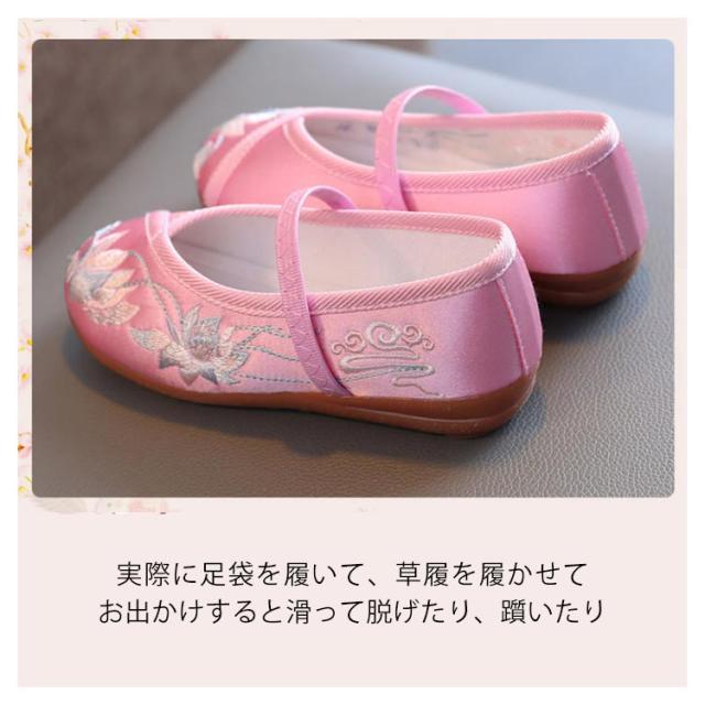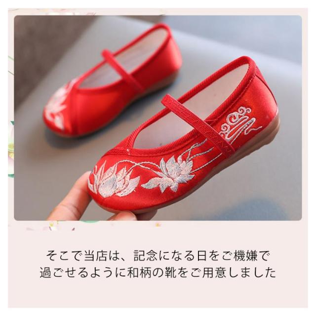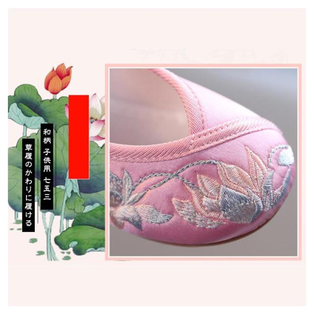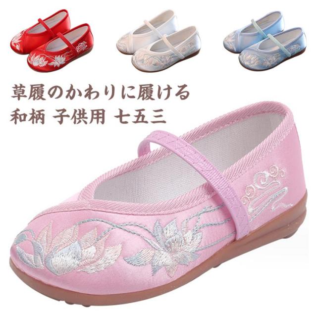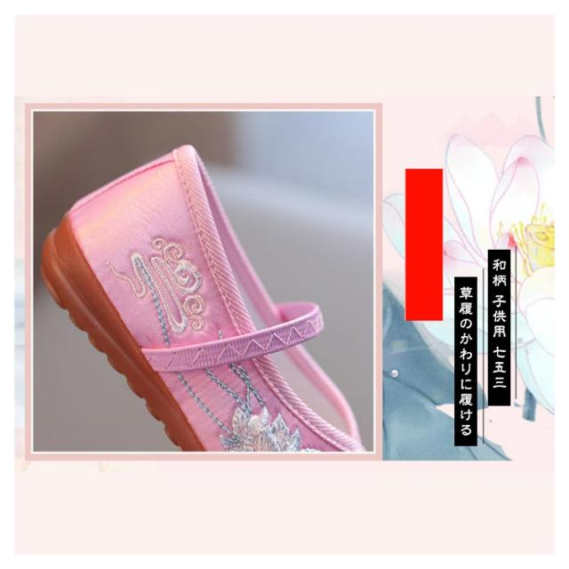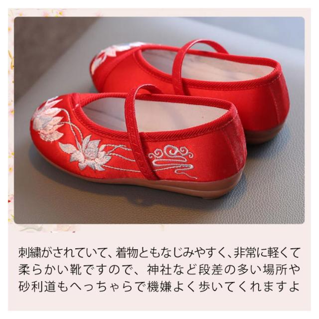 和柄 子供用 女の子 七五三 草履のかわりに履ける 痛くない 楽ちん靴 キッズ 刺繍 ぺたんこ ピンク レッド 赤 歩きやすい 着物 和装 草履
