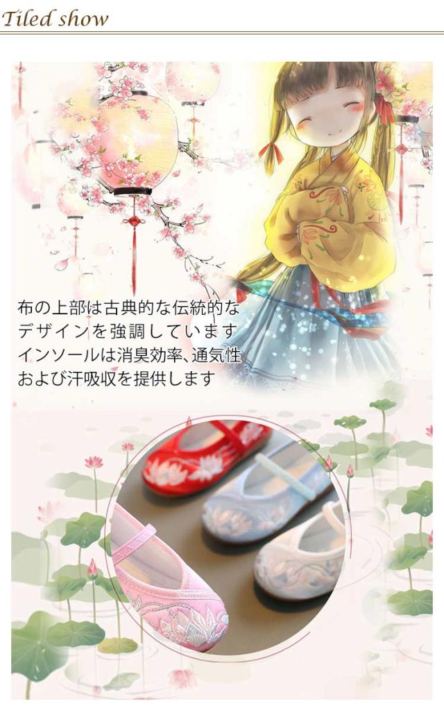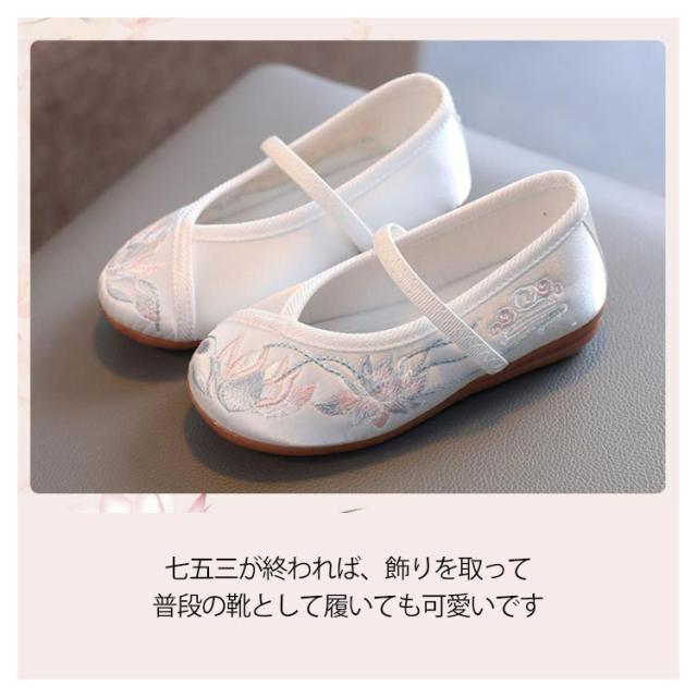 | 布の上部は古典的な伝統的なデザインを強調しています。インソールは消臭効率、通気性、および汗吸収を提供します。 七五三の女の子の3歳の時には三つ身の被布着物を着ますが、まだまだ小さいので履きなれない草履を嫌がることもあります。 実際に足袋を履いて、草履を履かせてお出かけすると滑って脱げたり、躓いたり。草履で上手に歩くのはまだちょっと難しいよね、というのが本当のところです。 そこで当店は、記念になる日をご機嫌で過ごせるように和柄の靴をご用意しました。 刺繍がされていて、着物ともなじみやすく、非常に軽くて柔らかい靴ですので、神社など段差の多い場所や砂利道もへっちゃらで機嫌よく歩いてくれますよ。 七五三が終われば、飾りを取って普段の靴として履いても可愛いです。 | |