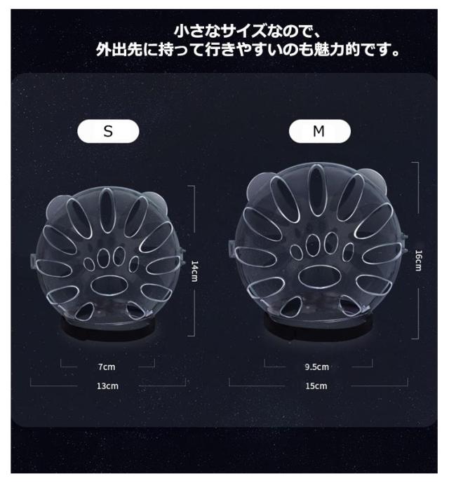 | ネコ用爪切り補助具マスク シャワーや爪切り、目薬差し、耳掃除、美容などの噛み防止、手術後の傷舐め防止に♪ 猫の不安も軽減する透明タイプです。 前後には通気穴が開いており、通気性も確保して蒸れを防ぐ仕様です。 マジックテープ式でスムーズに装着できるため、飼い主さんの負担も少なくすみます。 小さなサイズなので、外出先に持って行きやすいのも魅力的です。 安全なABS素材で猫に負担がかかりません。 | |