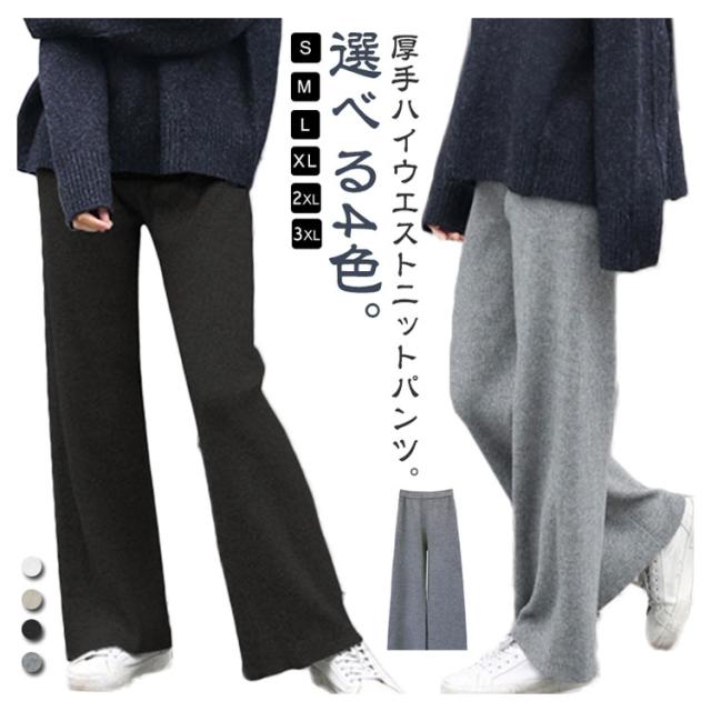 ワイドパンツ ニットパンツ レディース リブパンツ 秋冬 秋 冬 リブ リブニットパンツ ウエストゴム ストレートパンツ プリーツパンツ 大きいサイズ カジュアル