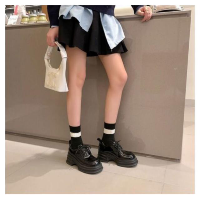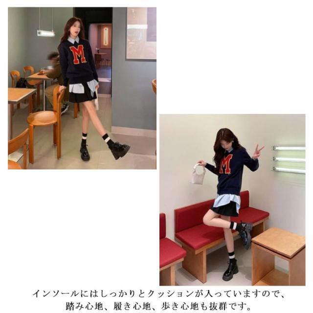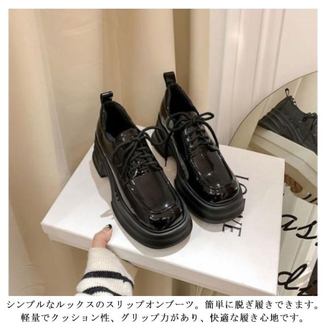 厚底ローファー ステッチ パンプス 軽い 防水性 スクエアトゥ 裏起毛なし ローファー 厚底 裏起毛 秋 冬 ローファーパンプス おでこ靴 幅広 通学 通勤 履きやすい 滑り止め 軽い 防水
