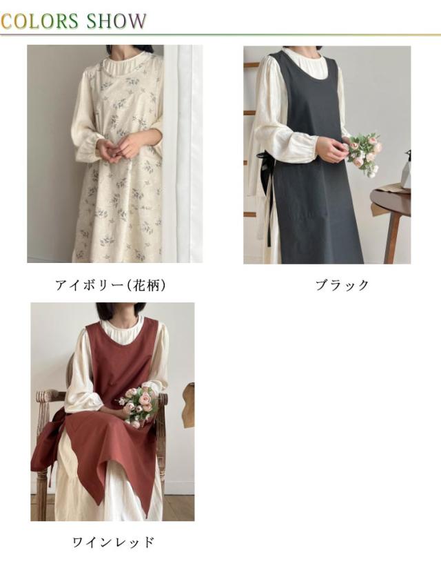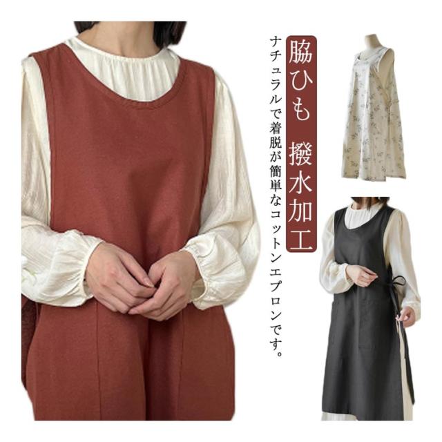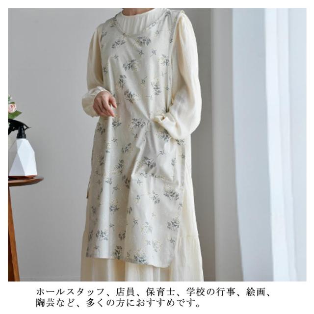 エプロン 撥水 ナチュラル 保育士 ワンピース カフェエプロン 大きいサイズ 北欧 おしゃれ かわいい シンプル 両脇開き 脇ひも 撥水加工 花柄 無地 ゆったり ロング丈 綿 コットン ドレス 家事 花屋 作業 ガーデン 着脱簡単 送料無料 母の日 プレゼント おうち時間