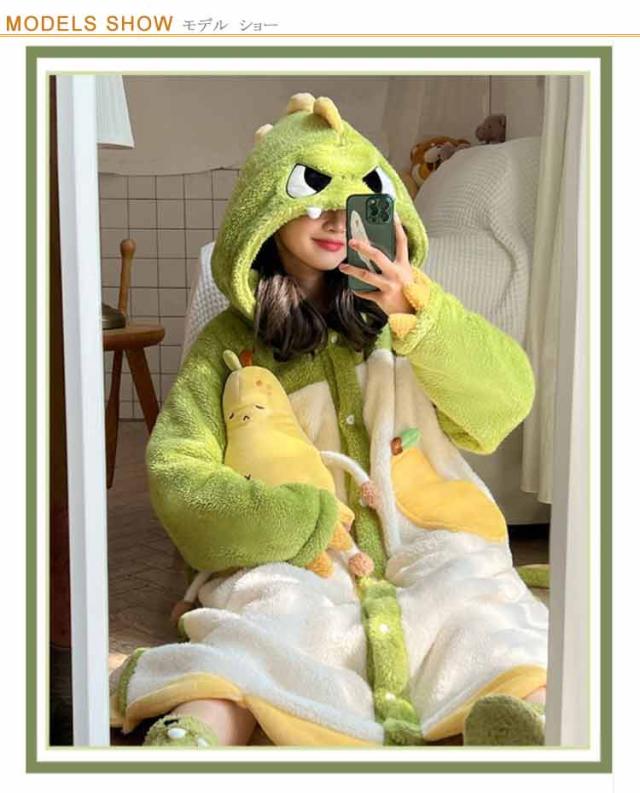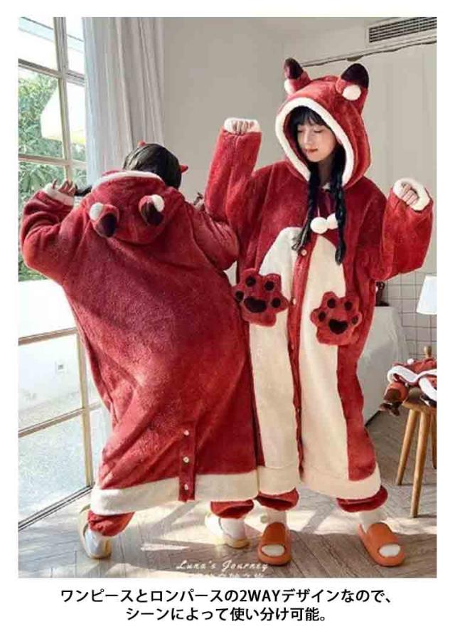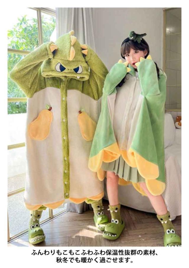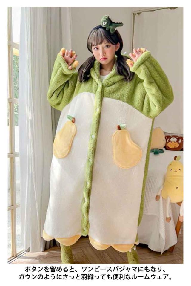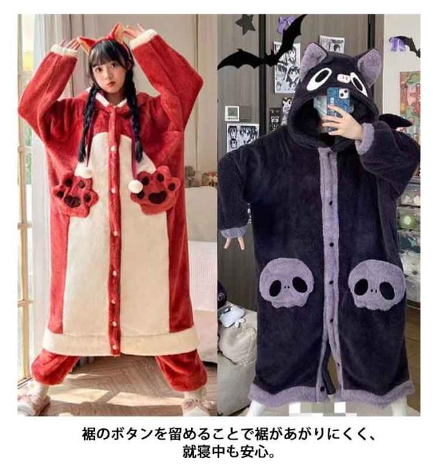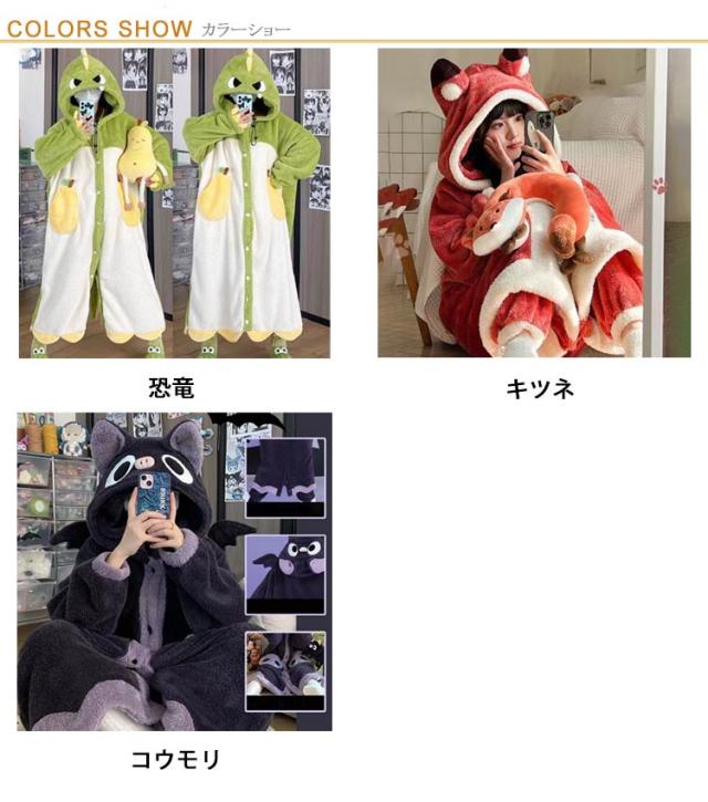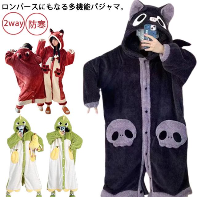 ルームウェア パジャマ ネグリジェ ロング 厚手 オールインワン 2way もこもこ 着る毛布 着ぐるみ 耳フード付き 部屋着 寝巻き あったか ふわふわ 防寒 カーディガン ガウン ワンピース リラックスウェア ボア 長袖 恐竜 キツネ コウモリ