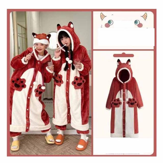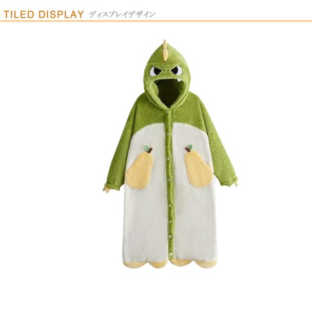 | ロンパースにもなる多機能パジャマ。 ボタンを留めると、ワンピースパジャマにもなり、ガウンのようにさっと羽織っても便利なルームウェア。 ふんわりもこもこふわふわ保温性抜群の素材、秋冬でも暖かく過ごせます。 裾のボタンを留めることで裾があがりにくく、就寝中も安心。ワンピースとロンパースの2WAYデザインなので、シーンによって使い分け可能。 恐竜 キツネ コウモリ 可愛い動物をモチーフしたデザイン、お家でのリラックスタイムがさらに楽しく快適に。 | |