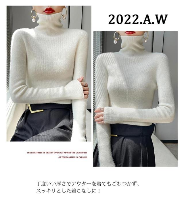 全19色!ニットトップス レディース 秋冬 セーター ハイネック 重ね着 インナー リブニット 起毛 ふわふわ タートル コーデ レイヤード シンプル きれいめ カラフル カジュアル ストレッチ 冷え取り 春 秋 冬