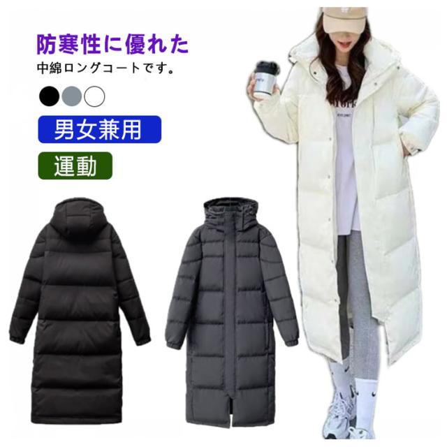 ロングコート ベンチコート 中綿コート 中綿ジャケット メンズ レディース フード付き 厚手 膝下 大きいサイズ アウター 長袖 暖か あったか アウトドア スポーツ ジム 運動 部活 キャンプ 通学 ユニセックス 男女兼用 お揃い 防寒 イベント