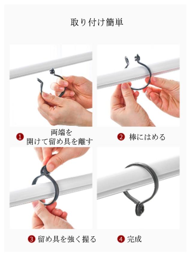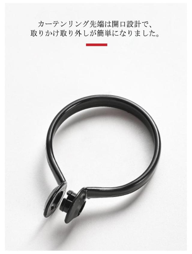 | スライドリングはオーダーカーテン100mmにつき約8〜10個。 カーテンリング先端は開口設計で、取りかけ取り外しが簡単になりました。 直径32-40mmまでのポールに適用で、ご購入の際はお使いのポールなどのサイズもご確認下さい。 | |