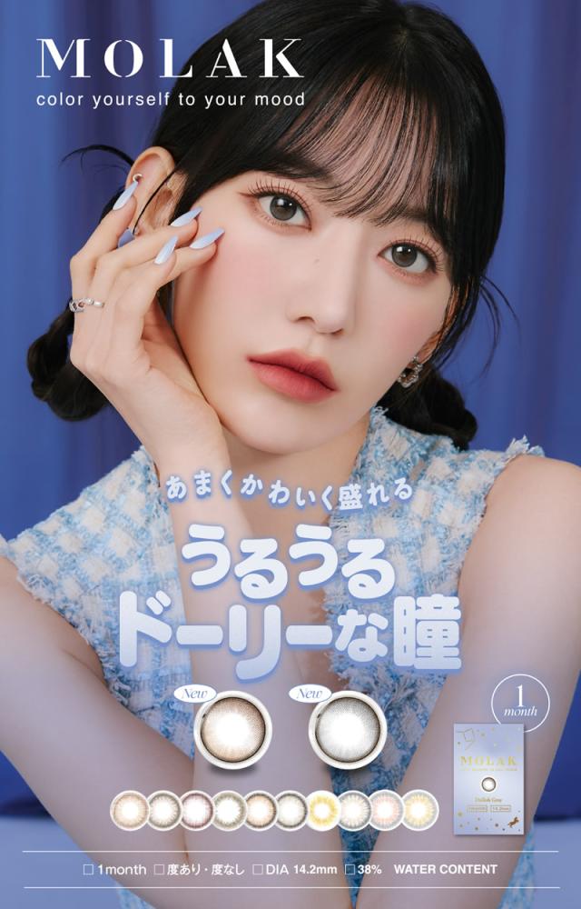 宮脇咲良 カラコン MOLAK モラク マンスリー 1箱2枚 (メール便送料無料) カラコン マンスリー 14.2mm 1month 度あり 度なし 宮脇咲良 プロデュース コンタクト