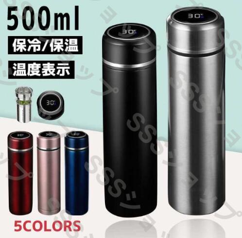 水筒 真空断熱ボトル ステンレスボトル 温度表示 500ml おしゃれ 温度測定 保冷 直飲み ダイレクト アウトドア 魔法瓶 コンパクト 軽量