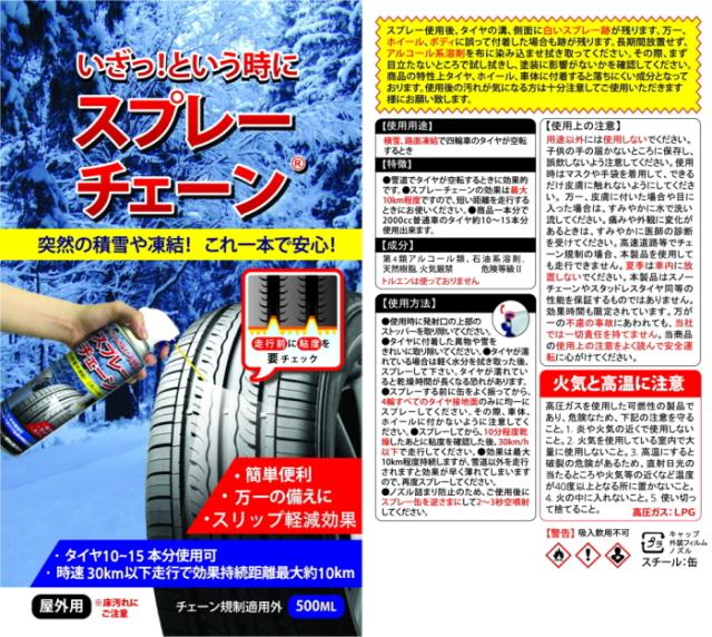 スプレーチェーン 500ml タイヤチェーン タイヤ 車用品 応急用 緊急用 緊急時 滑り止め 雪 スプレー式 スプレー式タイヤチェーン 滑り止めスプレー スノーチェーン スリップ防止 スリップ軽減 人気
