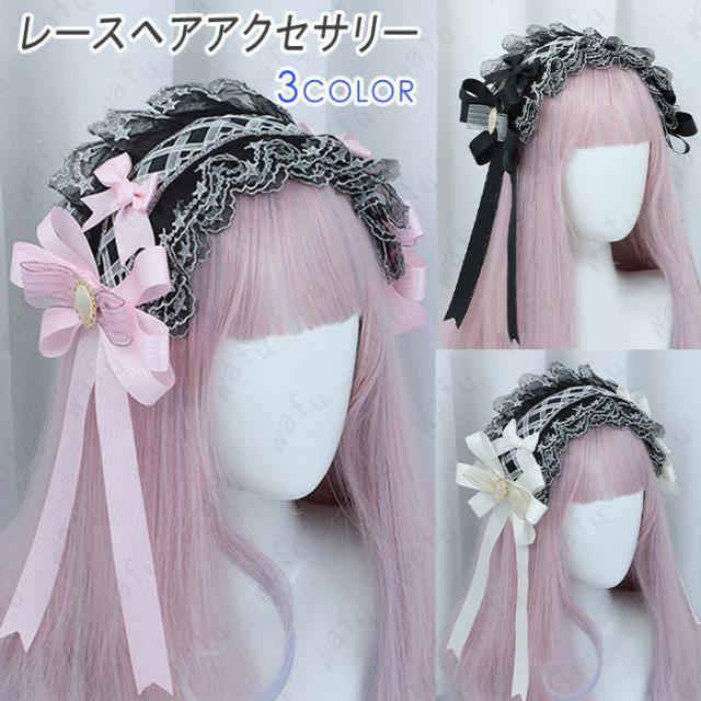 ロリータ カチューシャ (h83#) 日本国内当日発送 3color ヘアアクセサリー 髪飾り レース リボン ヘッドドレス メイド ゴスロリ 仮装 幅広 お嬢様 コスプレ 姫系