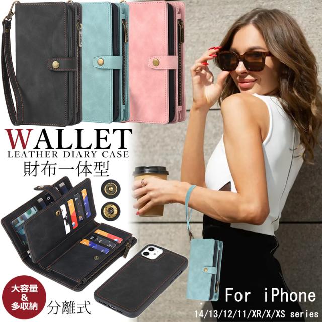 財布型 iphone16ケース 大容量 分離式 高品質 iphone15 手帳型カバー iphone12 13 ケース PU革 iphone XR XS max コインケース ファスナー設計 ウォレット iphone11 カード入れ おしゃれ iphone 14 pro max スマホケース マグネット式 手帳型 財布一体型 ストラップ付