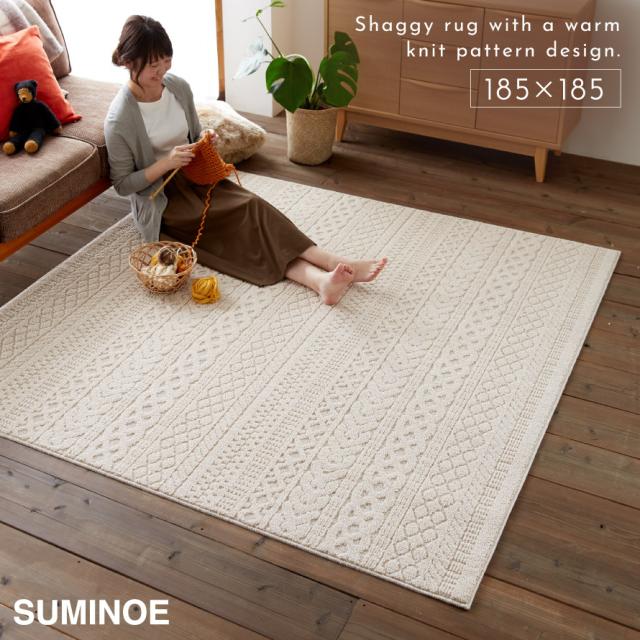 ラグ カーペット オシャレ,カーペット ラグ おしゃれ,ラグ 洗える,ラグ,カーペット,185×185cm,北欧,リビング,インテリア,おしゃれ,アクセントマット,アクセントラグ,マット,ラグマット,インテリアマット,フロアマット,軽い,軽量,コンパクト,洗える,洗濯機,ウォッシャブル,床暖房,床暖房対応,ホットカーペット,ホットカーペット対応,遊び毛防止,オールシーズン,防ダニ,ふわふわ,フワフワ,ふかふか,スミノエ,SUMINOE,日本製,ソファー,子供部屋,寝室,雑貨,北欧テイスト,北欧柄,シンプル,モダン,ナチュラル,お洒落,オシャレ,かわいい,可愛い,スタイリッシュ,アイボリー,ブラウン,茶色,モノトーン,ケーブル編み,ニット,ほっこり,カフェ,