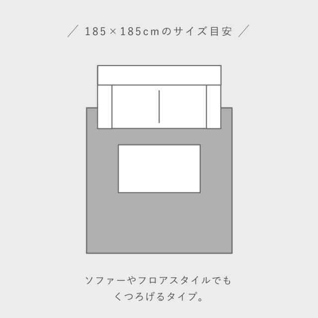 サイズは185×185cm、アイボリーとブラウンからお選びいただけます。