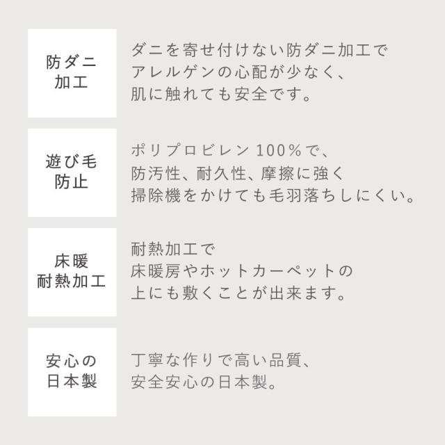 ■備考:耐熱加工(床暖房、ホットカーペット対応)、遊び毛防止、洗濯機OK、防ダニ加工