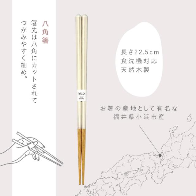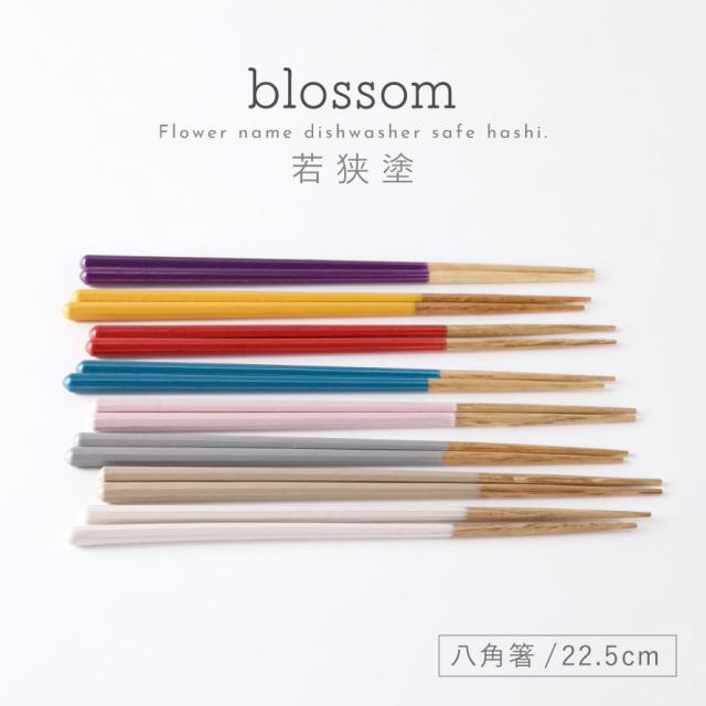 箸 食洗機対応 八角箸 22.5cm 八角形 若狭箸 おしゃれ 日本製 手に馴染む 八角の箸 ブロッサム お箸 アースカラー くすみカラー カラフル かわいい 天然木 家庭用 大人用 男性用 女性用 長め ギフト 来客 木製 かわいい 使いやすい 持ちやすい メール便対応