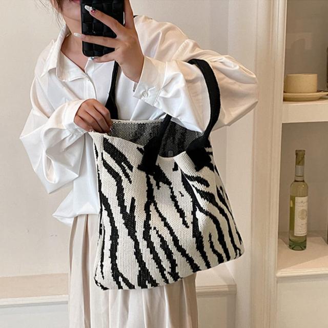 大人可愛い雰囲気漂うニット編みの肩掛けバッグ
