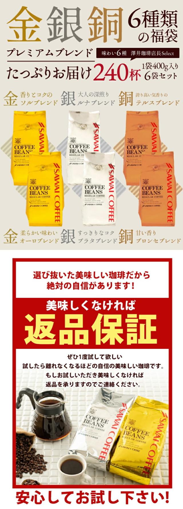 焙煎したて コーヒー豆 2.4kg ソル ルナ テルス オーロ プラタ ブロンセ 金銀銅 6種 金と銀と銅の珈琲 珈琲豆 送料無料 コーヒー 福袋 大容量 400gx6袋 中挽き/豆のまま コーヒー専門店 240杯分 飲み比べ セット プレミアム 贅沢 高級 逸品