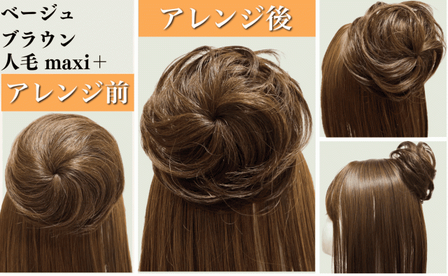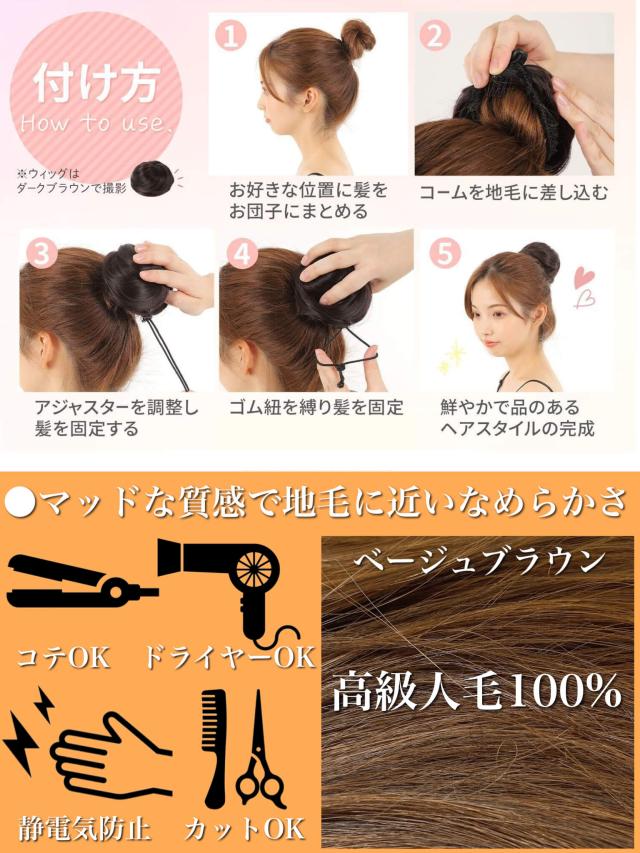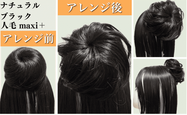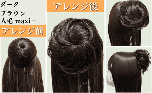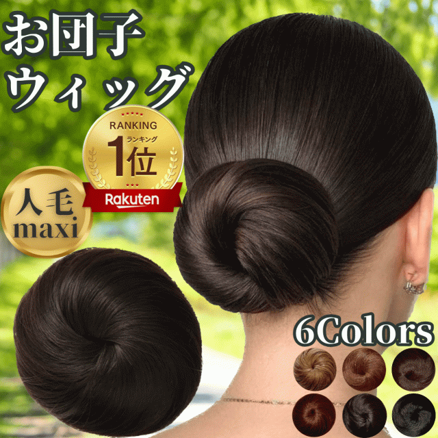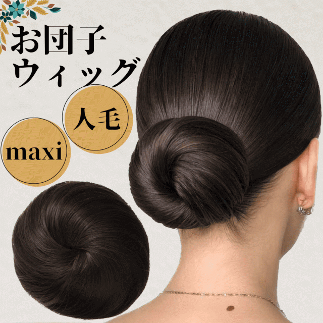 お団子ウィッグ 人毛 大き目 ウィッグ お団子 ゴム式 ポイントウィッグ 付け毛 ストレート 日常 和装 着物 浴衣 [3点セット] レディース 女性 社交ダンス ボリューム Uピン付 説明書付 おだんご シニヨン ブラック ブラウン Luce brillare ルスブリラーレ お団子maxi+