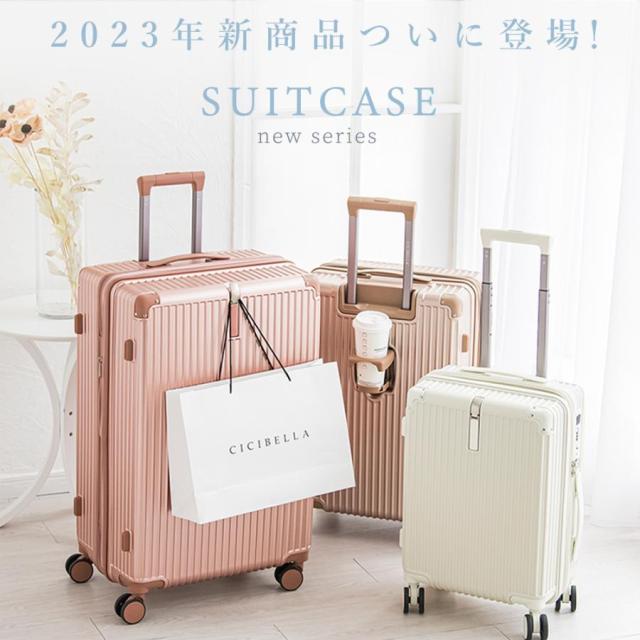 ★超人気新登場★ cicibella スーツケース キャリーケース Mサイズ 70L USBポート 3-7泊 泊まる カップホルダー 軽量 大容量 多収納ポケット GOTOトラベル