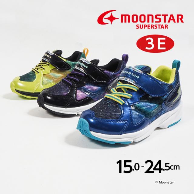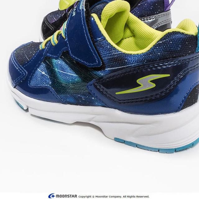 【商品特徴】 子どもたちの「速く走りたい」という想いから生まれた「スーパースター」の幅広3Eキッズシューズです。「速く走る」を体現するために搭載されたパワーバネが走りをアシストします。重さは17.0cmで片足約130gです。【パワーバネ】ムーンスター独自開発の特殊なゴムを靴底に搭載し、地面を踏みこむときにパワーを蓄積し、蹴り出すと同時に一気にパワーを推進力に。【Ag+抗菌防臭】銀イオンの抗菌作用でにおいのもととなる菌の増殖を抑制し、防臭効果を発揮します。【洗えるインソール】インソールは取り出して洗えるのでいつも清潔に保てます。【耐摩耗ラバー】靴底にはすり減りが少なく、高い耐久性を発揮するラバーを採用しています。宇宙空間の光速を表現したスタイリッシュで色鮮やかな一足です。運動会や体育の時間、クラブ活動等の走るシーンにおすすめです。
