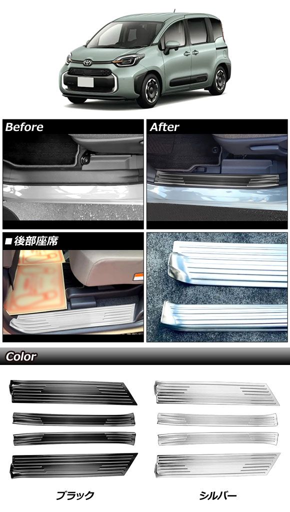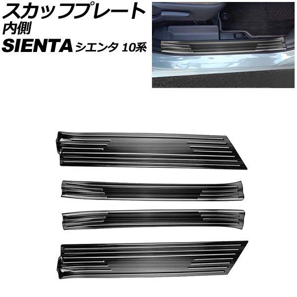 スカッフプレート 内側 トヨタ シエンタ 10系 2022年08月〜 ブラック ステンレス製 ヘアライン仕上げ 入数:1セット(4個) AP-SG340-BK