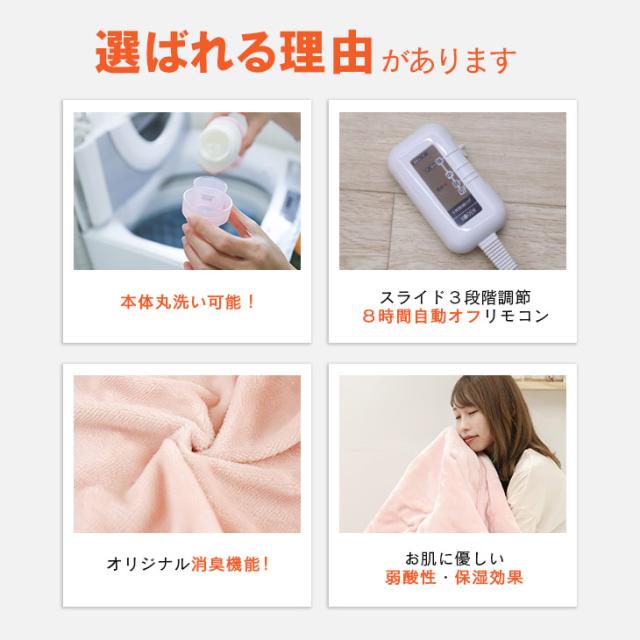 丸洗いOK 電気掛け敷き毛布 188×130cm 電気毛布 保湿 弱酸性 暖房器具 あったか ホット ピンク