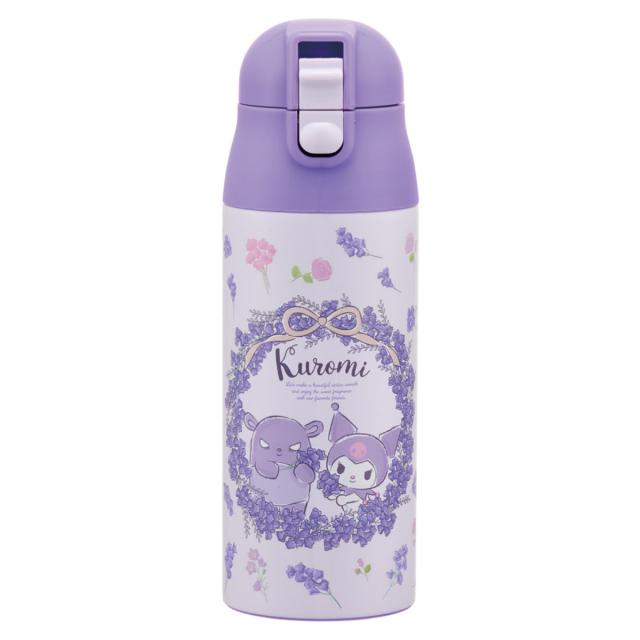 水筒 360ml 超軽量ワンプッシュステンマグ KUフラワーリース ( クロミ 直飲み 保温 保冷 マグボトル ステンレスマグボトル 軽量 ワンプッシュ ロック付き ワンタッチ ボトル ダイレクト 直のみ キッズ 大人 )