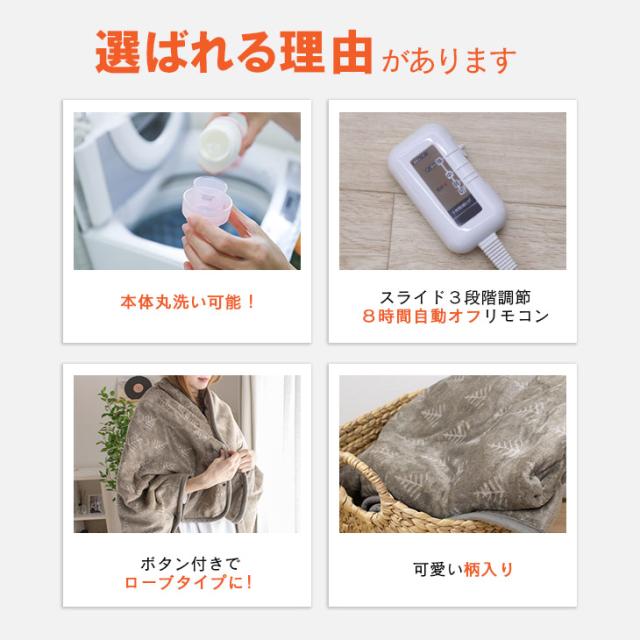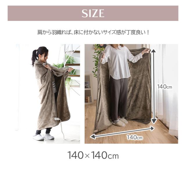 ホットローブ 140×140cm 洗える 電気暖房器具 あったか スライド温度調節 電気ブランケット ボタン付き 2WAY 丸洗いOK