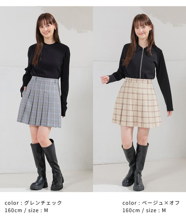 スカート ミニ 黒 チェック ピンク グレー 韓国 キッズ レディース ゴム 短め 幅広 制服 SALE セール Honeys ハニーズ ミニプリーツスカート