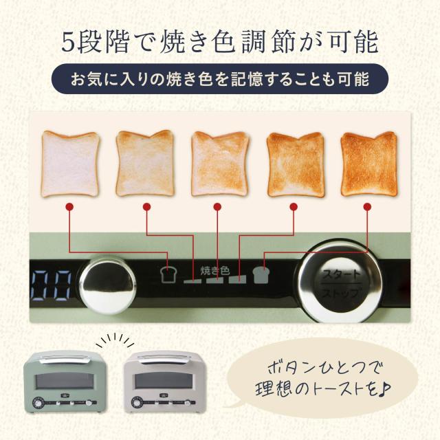 マイコン制御:焼き時間を自動調整/選べる5段階の焼き色/連続で何回焼いても同じ焼き色