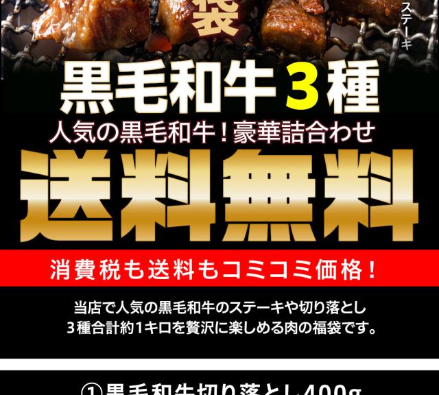 当店で人気の黒毛和牛3種 合計約1.1kgを贅沢に楽しめる肉の福袋!!